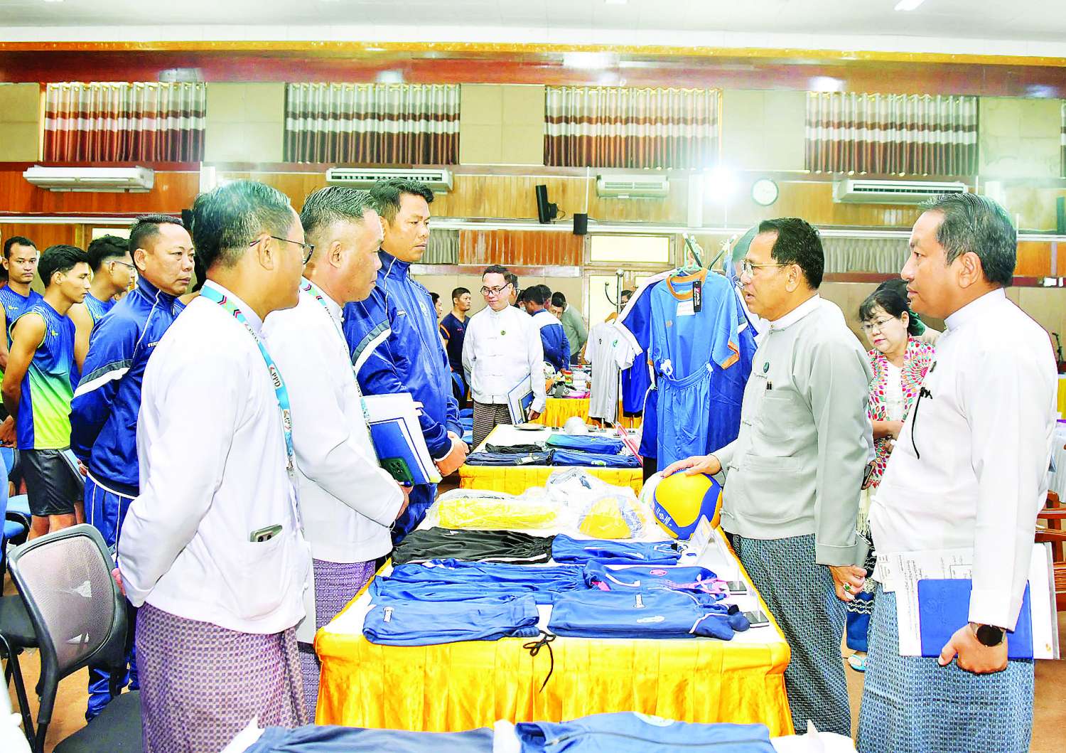 ထို့နောက် ပြည်ထောင်စုဝန်ကြီး၊ ဒုတိယဝန်ကြီး၊ အမြဲတမ်းအတွင်းဝန်နှင့် ဌာနဆိုင်ရာ အကြီးအကဲများက အားကစားနည်းများအလိုက် ခင်းကျင်းပြသထားသည့် အားကစားဝတ်စုံများ၊ လေ့ကျင့်ရေးသုံးပစ္စည်းများ၊ တစ်ပတ်စာ အစားအစာများ၊ ဆေးပစ္စည်းများနှင့် ပြိုင်ပွဲဝင်ပစ္စည်းများ ခင်းကျင်းပြသထားမှုကို ကြည့်ရှုစစ်ဆေးကာ ပြိုင်ပွဲဝင်အားကစားသမားများအား လိုအပ်သည်များမှာကြားပြီး အားပေးစကား ပြောကြားသည်။
