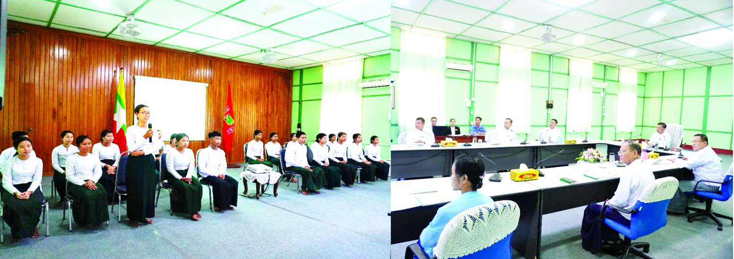 ဦးစွာ ဒုတိယဝန်ကြီးသည် ဘွဲ့နှင်းသဘင်ခန်းမ၌ ပါမောက္ခချုပ်၊ ဒုတိယပါမောက္ခချုပ်၊ ညွှန်ကြားရေးမှူးများ၊ ပါမောက္ခ/ဌာနမှူးများ၊ ဆရာ ဆရာမများ၊ ဝန်ထမ်းများ၊ ပထမနှစ်သင်တန်းသို့တက်ရောက်မည့် သင်တန်းသား သင်တန်းသူများအား တွေ့ဆုံအမှာစကားပြောကြားပြီး သင်တန်းသား သင်တန်းသူများထားရှိမည့် အိပ်ဆောင်များ၊ စာသင်ဆောင်များ၊ စားရိပ်သာများနှင့် ကျောင်းဝင်းအတွင်း စိုက်ပျိုး/မွေးမြူရေး ဆောင်ရွက်ထားရှိမှုများကို ကြည့်ရှုစစ်ဆေးကာ လိုအပ်သည်များ မှာကြားသည်။