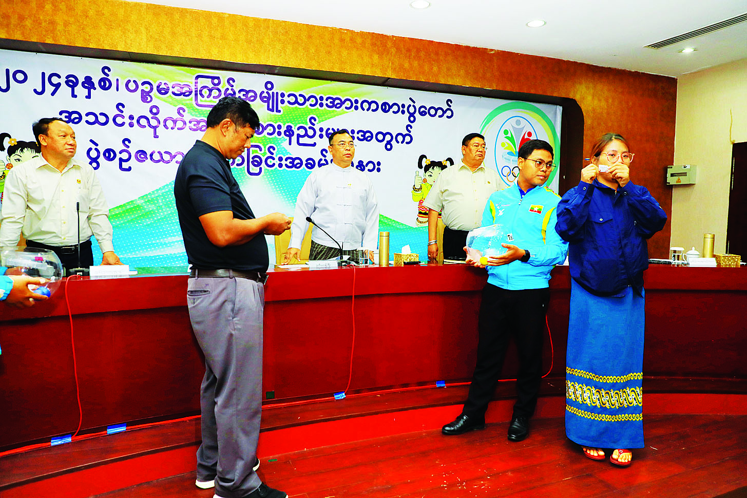 ၂၀၂၄ ခုနှစ် ပဉ္စမအကြိမ် အမျိုးသားအားကစားပွဲတော်ကျင်းပရေး ဦးစီးကော်မတီအစည်းအဝေးဆုံးဖြတ်ချက်အရ ပြည်နယ်နှင့် တိုင်းဒေသကြီးအဆင့် ၂၃ နည်းမှ အသင်းလိုက်အားကစားနည်းများဖြစ်သည့် ဘောလုံး၊ ဖူဆယ်၊ ဘော်လီဘော၊ ဘတ်စကက်ဘော၊ ပိုက်ကျော်ခြင်း၊ ကြက်တောင်၊ ရိုးရာခြင်းလုံး၊ စားပွဲတင်တင်းနစ်၊ တင်းနစ်နှင့် ခရစ်ကက်အားကစားနည်း ၁၀ နည်းနှင့်ပတ်သက်၍ ပြိုင်ပွဲပွဲစဉ်ဇယား ကြိုတင်ရေးဆွဲနိုင်ရေးအတွက် အုပ်စုမဲနှိုက်ခြင်းကို ယနေ့နံနက်ပိုင်းတွင် နေပြည်တော်ဝဏ္ဏသိဒ္ဓိဘောလုံးကွင်းအစည်းအဝေးခန်းမ၌ ကျင်းပသည်။