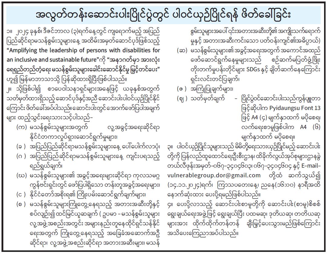 အလွတ်တန်းဆောင်းပါးပြိုင်ပွဲတွင် ပါဝင်ယှဉ်ပြိုင်ရန် ဖိတ်ခေါ်ခြင်း