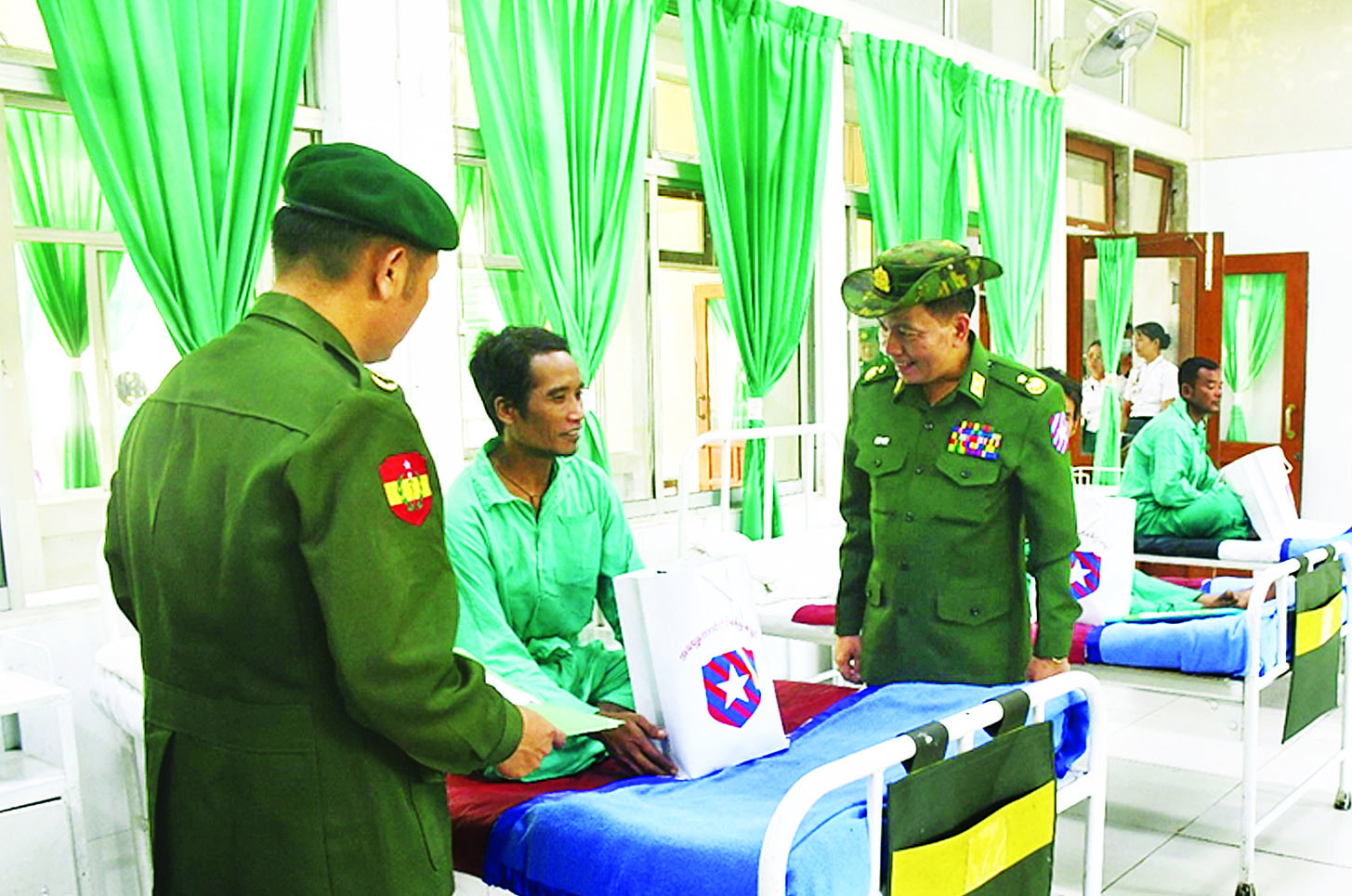 မွန်ပြည်နယ် မော်လမြိုင်မြို့ရှိ နယ်မြေခံတပ်မတော်ဆေးရုံတွင် တက်ရောက်ဆေးကုသမှုခံယူလျက်ရှိသော အရာရှိ၊ စစ်သည်၊ မိသားစုဝင်များ၊ မြန်မာနိုင်ငံရဲတပ်ဖွဲ့ဝင်များ၊ စစ်မှုထမ်းဟောင်းအဖွဲ့ဝင်များနှင့် ဒေသခံပြည်သူများကို ယနေ့မွန်းလွဲပိုင်းတွင် အရှေ့တောင်တိုင်းစစ်ဌာနချုပ် တိုင်းမှူး ဗိုလ်ချုပ် ကျော်လင်းမောင်နှင့် အဖွဲ့ဝင်များက သွားရောက်၍ တစ်ဦးချင်း၏ ရောဂါဖြစ်ပွားမှုအခြေအနေများ၊ ဆေးဝါးကုသပေးထားမှုအခြေအနေများနှင့် ကျန်းမာရေးတိုးတက်ကောင်းမွန်မှု အခြေအနေများကို ရင်းရင်းနှီးနှီးမေးမြန်းအားပေးစကားပြောကြားပြီး အာဟာရဖြည့်စားသောက်ဖွယ်ရာများ ထောက်ပံ့ပေးအပ်သည်။