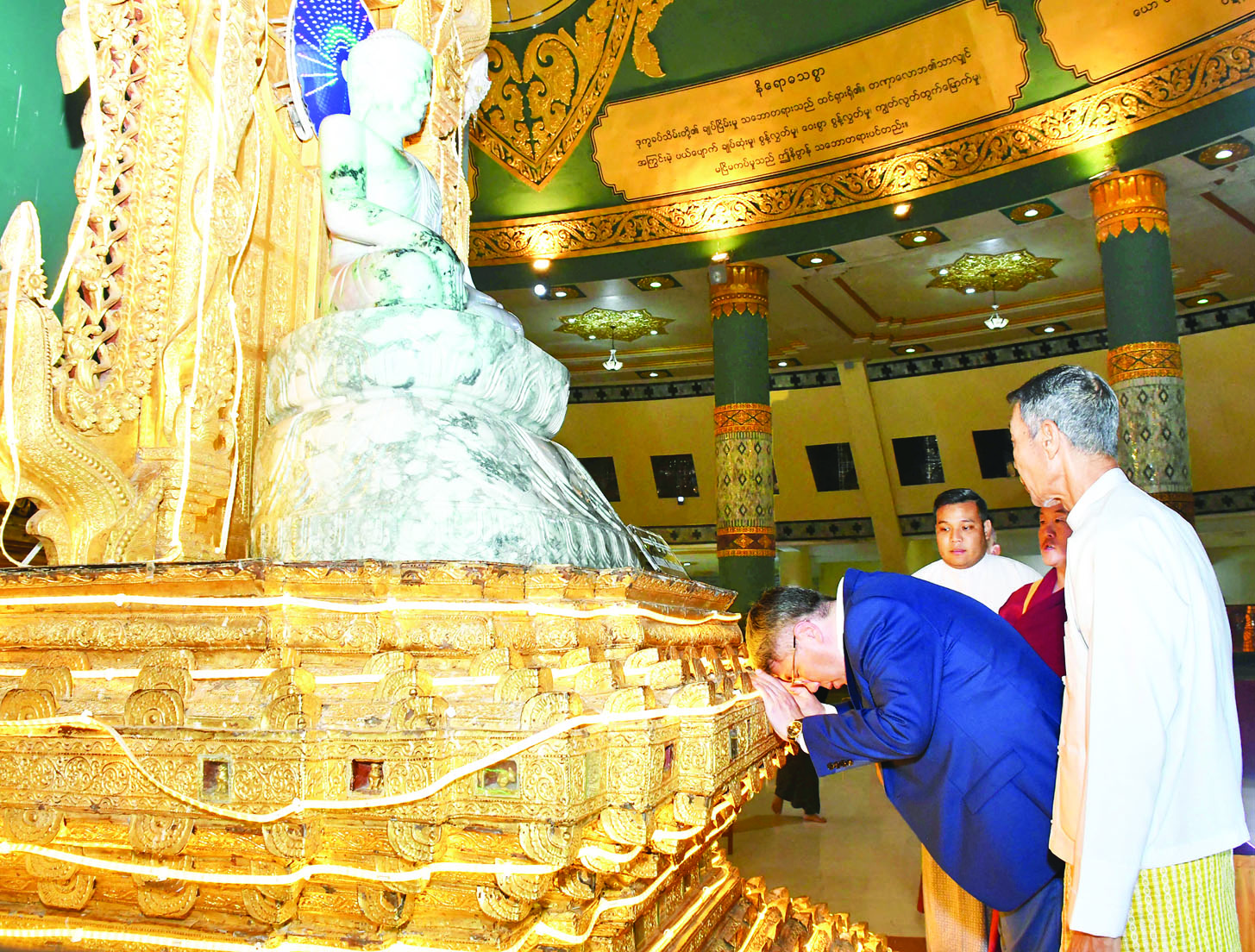 ထို့နောက် ဘူရားတီးရား ပြည်နယ်အကြီးအကဲနှင့် အဖွဲ့သည် နေပြည်တော်ရှိ ဥပ္ပါတသန္တိစေတီတော်မြတ်ကြီးအား သွားရောက်ဖူးမြော်ကြည်ညိုကြပြီး လိုဏ်အတွင်းရှိ ဗုဒ္ဓရုပ်ပွားတော်မြတ်အား ပန်း၊ ရေချမ်းများ ကပ်လှူပူဇော်၍ အလှူငွေများ လှူဒါန်းကြကာ ရတနာဆင်ဖြူတော်အဆောင်ရှိ ဆင်ဖြူတော်များကို အာဟာရဖြည့်စွက်စာများ ကျွေးမွေးခဲ့ကြသည်။