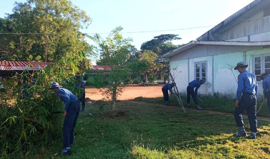 ထိုသို့ ဆောင်ရွက်ပေးလျက်ရှိရာ ယနေ့တွင် ရန်ကုန်တိုင်းဒေသကြီး၊ အလုံမြို့နယ်အပါအဝင် မြို့နယ် ၁၆ မြို့နယ်တို့ရှိ စာသင်ကျောင်းများ အတွင်း/အပြင်ရှိ ချုံနွယ်ပေါင်းမြက်များ ခုတ်ထွင်ရှင်းလင်းခြင်း၊ အမှိုက်များရှင်းလင်းခြင်းနှင့် ရေစီးရေလာ ကောင်းမွန်စေရေးရေနုတ်မြောင်းများ တူးဖော်ပေးခြင်းများကို စုပေါင်းဆောင်ရွက်ပေးကြသည်။