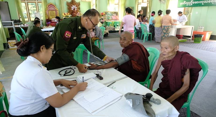 ထိုသို့ဆောင်ရွက်ပေးရာတွင် ဆေးကုသရေးအဖွဲ့က သံဃာတော် ၇ ပါးနှင့် ဒေသခံပြည်သူ ၁၁၅ ဦးတို့ကို သွေးတိုးရောဂါ၊ အဆစ်အမြစ်ရောင်ရောဂါ၊ ဆီးချိုရောဂါ၊ အသက်ရှူလမ်းကြောင်းဆိုင်ရာရောဂါ၊ မျက်စိရောဂါ၊ သွားနှင့်ခံတွင်းရောဂါ၊ ခွဲစိတ်ကုသမှုဆိုင်ရာရောဂါ၊ ကလေးရောဂါ၊ အထွေထွေရောဂါတို့နှင့်ပတ်သက်၍ လိုအပ်သည့် ကျန်းမာရေးစစ်ဆေးကုသပေးခြင်းများ ဆောင်ရွက်ပေးပြီး ကျန်းမာရေးအသိပညာပေးခြင်းများ ဟောပြောဆွေးနွေးကာ ဆေးရုံတက်ရောက်ကုသရန် လိုအပ်သည့်လူနာများအား နယ်မြေခံတပ်မတော်ဆေးရုံသို့ တက်ရောက်ကုသနိုင်ရေး စီစဉ်ဆောင်ရွက်ပေးခဲ့ကြောင်း သတင်းရရှိသည်။