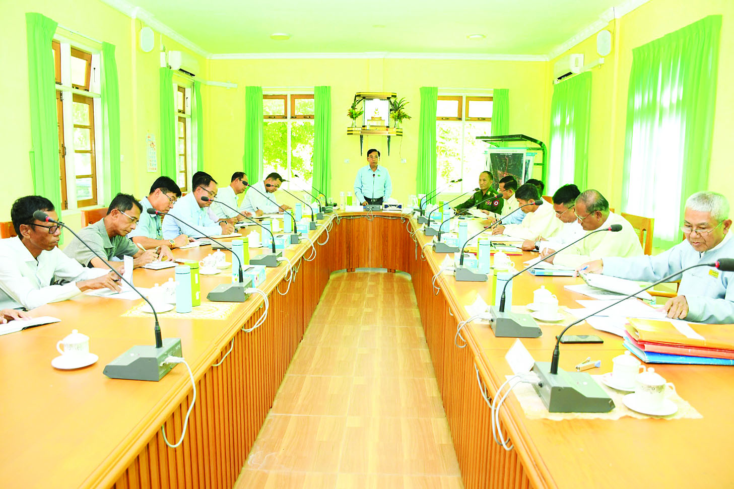 ယင်းနောက် တက်ရောက်လာကြသူများက ဘက်စုံပြုပြင်မွမ်းမံရေးလုပ်ငန်း ဆောင်ရွက်နေမှုအခြေအနေများနှင့် ဆက်လက်ဆောင်ရွက်မည့်လုပ်ငန်းစဉ်များကို ရှင်းလင်းတင်ပြကြရာ နေပြည်တော်ကောင်စီဥက္ကဋ္ဌက တင်ပြချက်များနှင့်ပတ်သက်၍ လိုအပ်သည်များကို ပေါင်းစပ်ညှိနှိုင်းဆောင်ရွက်ပေးသည်။