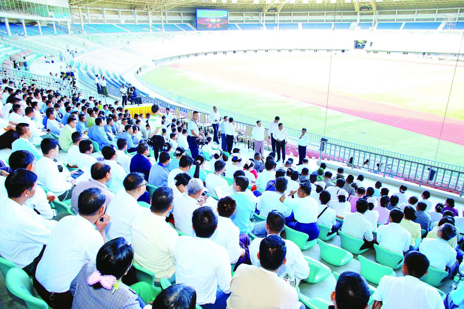 ၂၀၂၄ ခုနှစ် ပဉ္စမအကြိမ် အမျိုးသားအားကစားပွဲတော် အောင်မြင်စွာကျင်းပနိုင်ရေးအတွက် ဖိတ်ကြားရေးနှင့် ကြိုဆိုနေရာချထားရေးဆပ်ကော်မတီနှင့် ဝန်ကြီးဌာနများမှ တာဝန်ရှိသူများပါဝင်သည့် အားကစားကွင်းအတွင်း ကြိုဆိုနေရာချထားမည့်အစီအစဉ် ကြိုတင်လေ့ကျင့်ခြင်းကို ယနေ့မွန်းလွဲပိုင်းတွင် ဝဏ္ဏသိဒ္ဓိအားကစားကွင်း၌ ကျင်းပသည်။