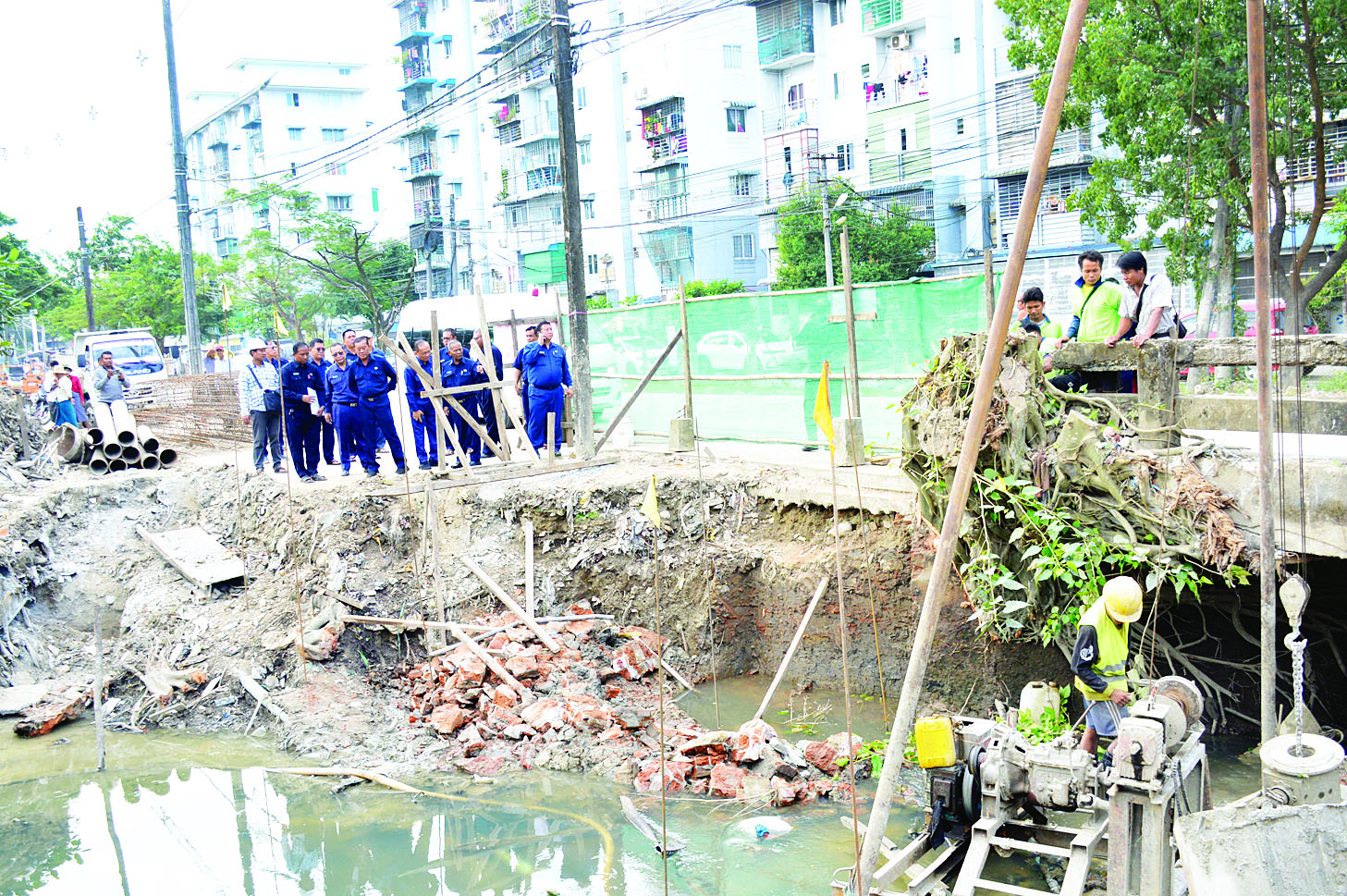 ထိုမှတစ်ဆင့် ဒဂုံမြို့သစ် (တောင်ပိုင်း) မြို့နယ်ဧရာဝဏ်လမ်းအား အင်ဂျင်နီယာဌာန (လမ်းနှင့်တံတား) က အရှည် ပေ ၂၇၀၀ ၊ အကျယ် ၁၅ ပေ၊ အောက်ခံထုခြောက်လက်မနှင့် အပေါ်ယံထု ရှစ်လက်မကွန်ကရစ်လမ်းသား တိုးချဲ့ဆောင်ရွက်နေမှုလုပ်ငန်းကို သွားရောက်ကြည့်ရှုစစ်ဆေးပြီး လိုအပ်သည်များ ဖြည့်ဆည်းဆောင်ရွက်ပေးသည်။