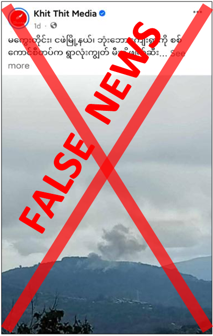 တရားမဝင်ပြည်ဖျက်မီဒီယာများက နယ်မြေလုံခြုံရေးဆောင်ရွက်နေသည့် လုံခြုံရေးတပ်ဖွဲ့ဝင်များအပေါ် အထင်အမြင်လွဲမှားစေရန်နှင့် PDF အမည်ခံအကြမ်းဖက်သမားများက ဒေသခံပြည်သူများ၏နေအိမ်များ မီးရှို့ဖျက်ဆီးခြင်းကို ဖုံးကွယ်ရန်အတွက် ယခုကဲ့သို့ သတင်းတု၊ သတင်းအမှားများဖြင့် လုပ်ကြံရေးသားပြီး လှုံ့ဆော်ဝါဒဖြန့်ဝေနေခြင်းသာဖြစ်ကြောင်း သတင်းရရှိသည်။
