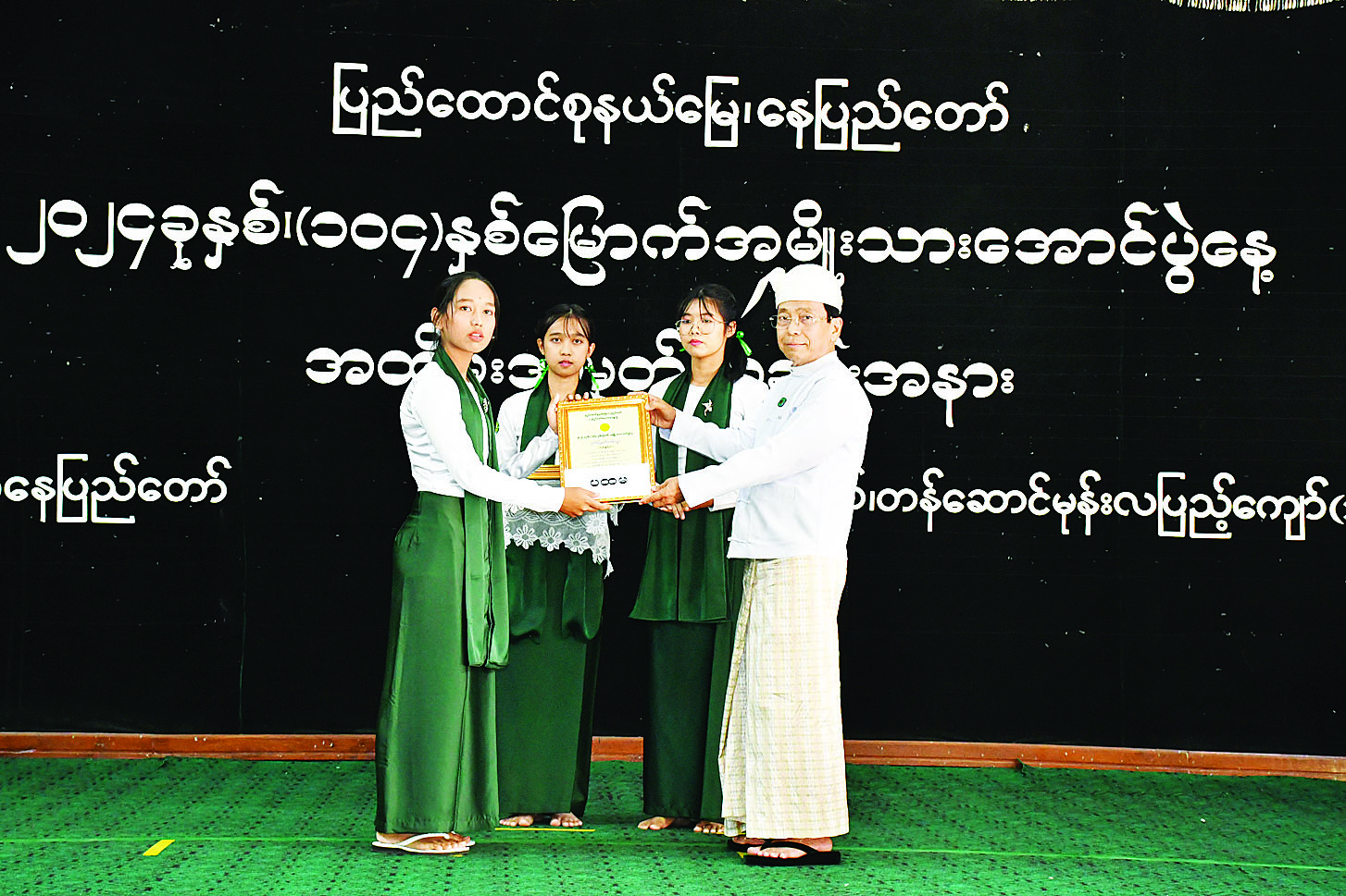 ယင်းနောက် နေပြည်တော်ကောင်စီဥက္ကဋ္ဌက (၁၀၄)နှစ်မြောက် အမျိုးသားအောင်ပွဲနေ့ အထိမ်း အမှတ် အခြေခံပညာအထက်တန်းအဆင့် စာစီစာကုံးပြိုင်ပွဲတွင် ဆုရရှိကြသည့် ကျောင်းသား ကျောင်းသူများနှင့် နေပြည်တော်ကောင်စီဝင် ဦးမြင့်စိုးက အလယ်တန်းအဆင့် ကဗျာပြိုင်ပွဲတွင် ဆုရရှိကြသည့် ကျောင်းသား ကျောင်းသူများကို ဂုဏ်ပြုဆုများ ပေးအပ်ချီးမြှင့်ကြသည်။
