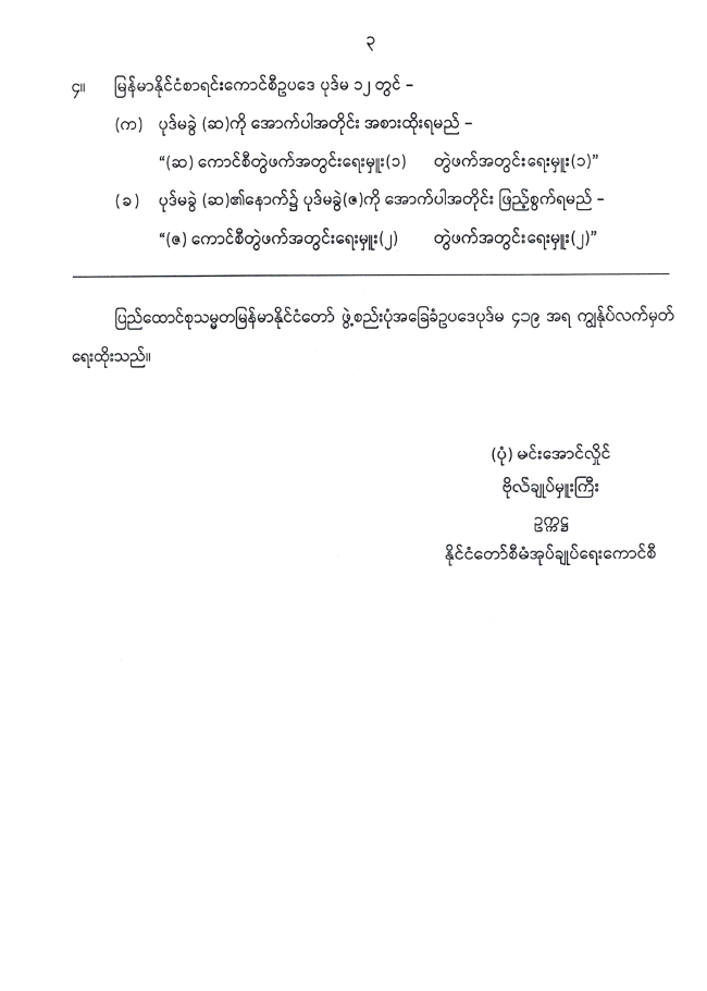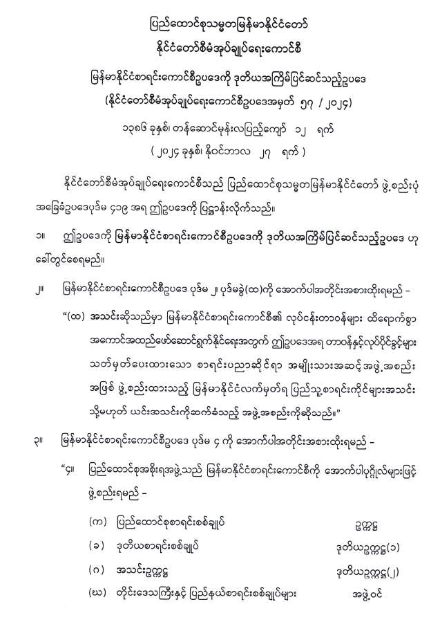 မြန်မာနိုင်ငံစာရင်းကောင်စီဥပဒေကို ဒုတိယအကြိမ်ပြင်ဆင်သည့်ဥပဒေ