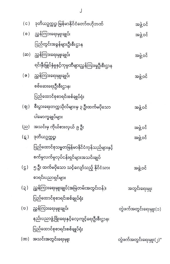 ဝန်ကြီးဌာန ကြေညာချက်များ