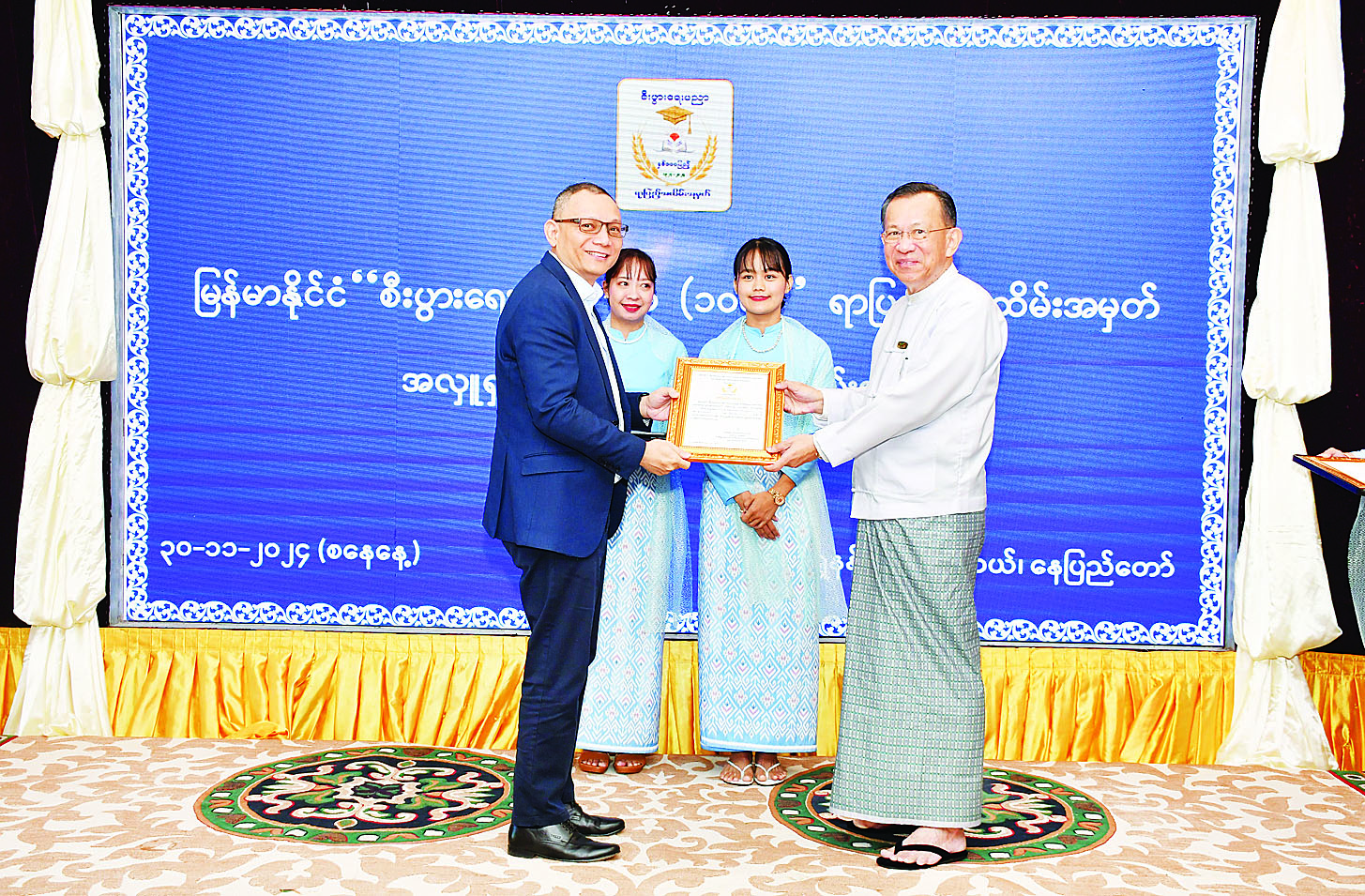 မြန်မာနိုင်ငံ “စီးပွားရေးပညာနှစ် (၁၀၀)” ရာပြည့်အလှူရှင်များ ဂုဏ်ပြုပွဲအခမ်းအနားကို ယနေ့နံနက်ပိုင်းတွင် နေပြည်တော်ရှိ Aureum Palace Hotel, Lake View Hall ၌ကျင်းပသည်။