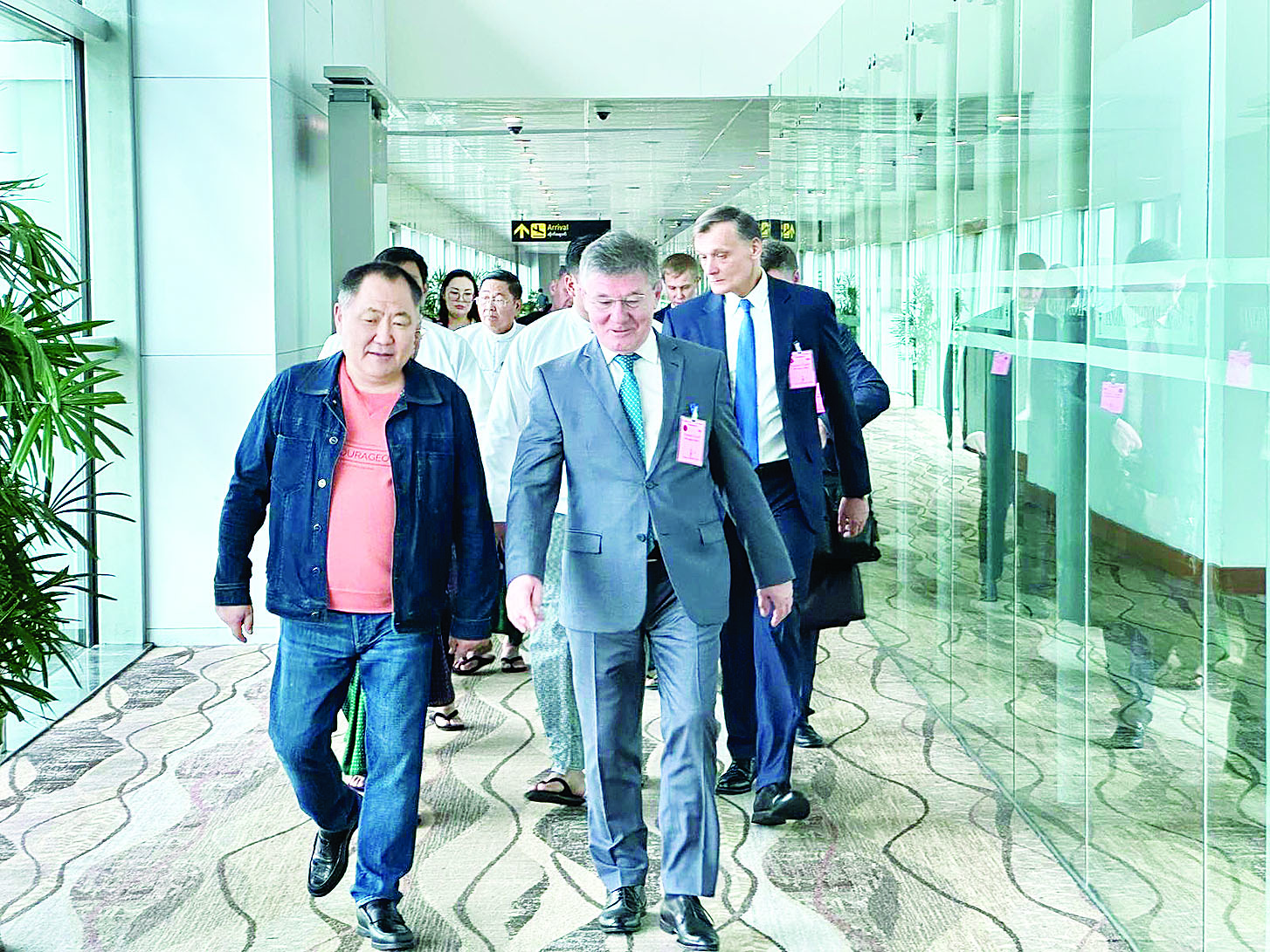 ရုရှားဖက်ဒရေးရှင်းနိုင်ငံ ဒူးမားလွှတ်တော် ဒုတိယဥက္ကဋ္ဌ မစ္စတာ ရှာလ်ဘန်းကာရာအော်လ်ဦးဆောင်သည့် ကိုယ်စားလှယ်အဖွဲ့သည် ယနေ့မွန်းလွဲပိုင်းတွင် ရန်ကုန်မြို့သို့ ရောက်ရှိရာ ပြည်ထောင်စုကြံ့ခိုင်ရေးနှင့် ဖွံ့ဖြိုးရေးပါတီဗဟိုအလုပ်အမှုဆောင်နှင့် ရန်ကုန်တိုင်းဒေသကြီး ပြည်ထောင်စုကြံ့ခိုင်ရေးနှင့် ဖွံ့ဖြိုးရေးပါတီ၏ဥက္ကဋ္ဌ ဦးခင်မောင်စိုး၊ မြန်မာနိုင်ငံဆိုင်ရာ ရုရှားသံအမတ်ကြီး H.E. Mr. Iskander Azizov၊ နိုင်ငံခြားရေးဝန်ကြီးဌာန၊ မဟာဗျူဟာလေ့လာရေးနှင့် လေ့ကျင့်ရေးဦးစီးဌာန၏ ညွှန်ကြားရေးမှူးချုပ် ဦးဇော်ဖြိုးဝင်း၊ ရန်ကုန်မြို့ နိုင်ငံခြားရေးဝန်ကြီးဌာနမှ တာဝန်ရှိသူများက ရန်ကုန်အပြည်ပြည်ဆိုင်ရာ လေဆိပ်၌ ကြိုဆိုနှုတ်ဆက်ကြသည်။