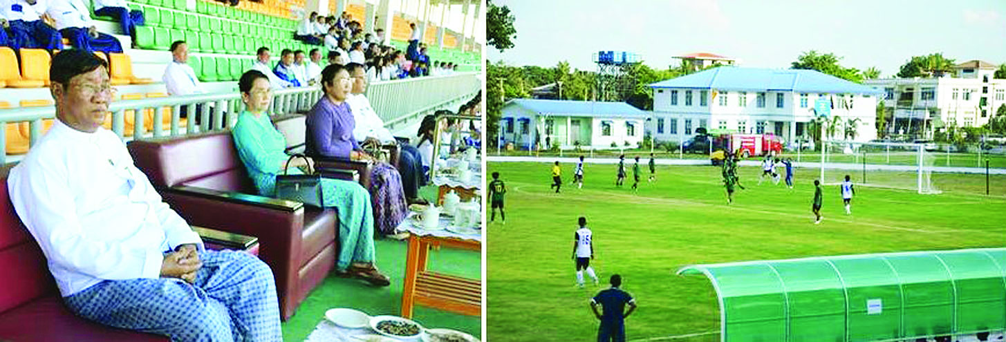 ပြည်ထောင်စုဝန်ကြီး ဦးဉာဏ်ထွန်း ပဉ္စမအကြိမ် အမျိုးသားအားကစားပွဲတော် ဝန်ကြီးဌာနပေါင်းစုံ အလွတ်တန်းအမျိုးသားဘောလုံးပြိုင်ပွဲ ယှဉ်ပြိုင်နေမှု ကြည့်ရှုအားပေး