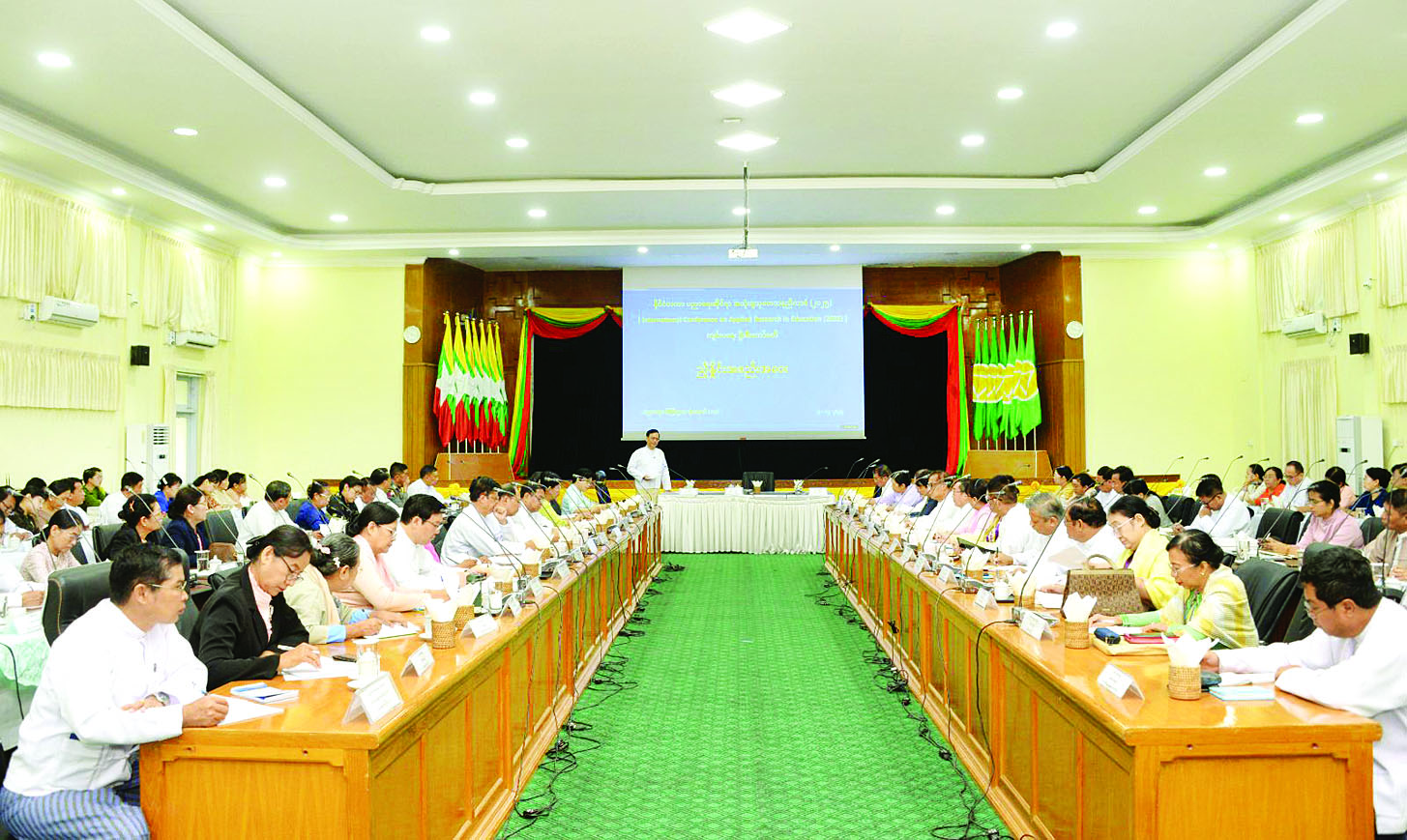 နိုင်ငံတကာပညာရေးဆိုင်ရာ အသုံးချသုတေသနညီလာခံ (၂၀၂၅) ဦးစီးကော်မတီ ညှိနှိုင်းအစည်းအဝေးကို ယနေ့နံနက် ၁၀ နာရီတွင် နေပြည်တော် ပညာရေးဝန်ကြီးဌာန ရုံးအမှတ် (၁၃) ရှိ အစည်းအဝေးခန်းမ၌ ကျင်းပရာ ပညာရေးဝန်ကြီးဌာန ဒုတိယဝန်ကြီး ဒေါက်တာဇော်မြင့်နှင့် တာဝန်ရှိသူများ၊ ပညာရေးဝန်ကြီးဌာနနှင့် ဆက်စပ်ဝန်ကြီးဌာနများမှ ပါမောက္ခချုပ်များ၊ ဒုတိယအမြဲတမ်းအတွင်းဝန်များ၊ ဒုတိယပါမောက္ခချုပ်များ၊ ပညာရေးဒီဂရီကောလိပ် ကျောင်းအုပ်ကြီးများ၊ ဘာသာရပ်ဆိုင်ရာ ပါမောက္ခများ၊ ညွှန်ကြားရေးမှူးများနှင့် ဖိတ်ကြားထားသူများ တက်ရောက်ကြသည်။