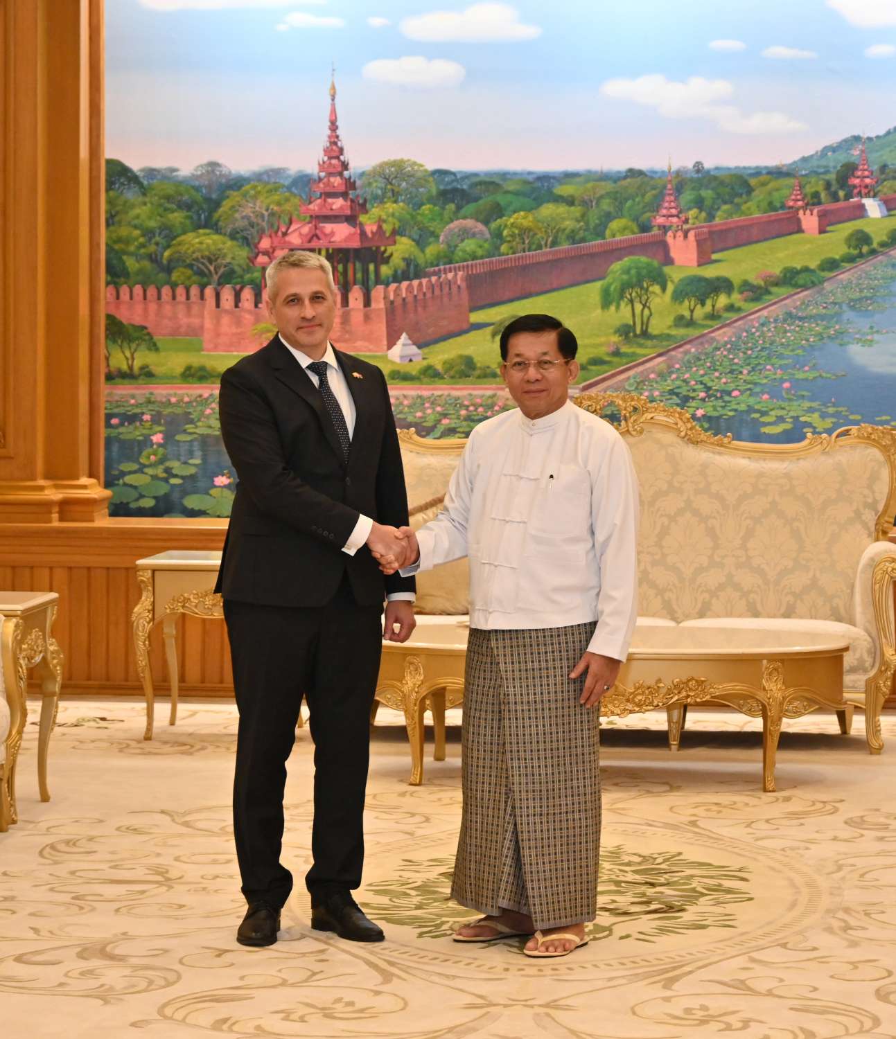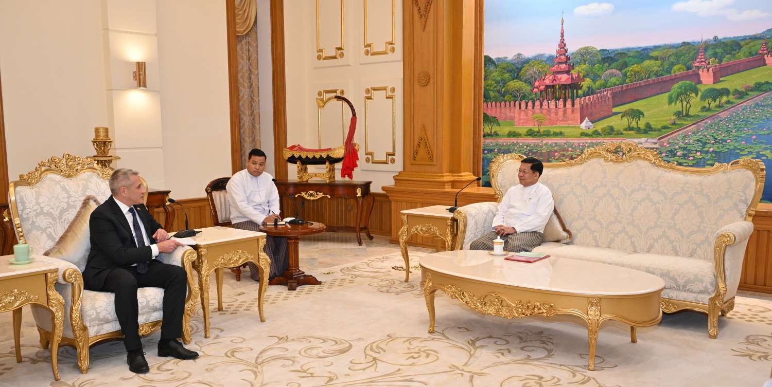 နိုင်ငံတော်စီမံအုပ်ချုပ်ရေးကောင်စီဥက္ကဋ္ဌ နိုင်ငံတော်ဝန်ကြီးချုပ် ဗိုလ်ချုပ်မှူးကြီးမင်းအောင်လှိုင် ဟနွိုင်းမြို့အခြေစိုက် မြန်မာနိုင်ငံဆိုင်ရာ ဘယ်လာရုစ်နိုင်ငံသံအမတ်ကြီး H.E. Mr. Uladzimir Baravikou အား ယနေ့နံနတ်ပိုင်းတွင် နေပြည်တော်ရှိ နိုင်ငံတော်စီမံအုပ်ချုပ်ရေးကောင်စီဥက္ကဋ္ဌရုံး၊ ဧည့်ခန်းမ၌ လက်ခံတွေ့ဆုံသည်။
