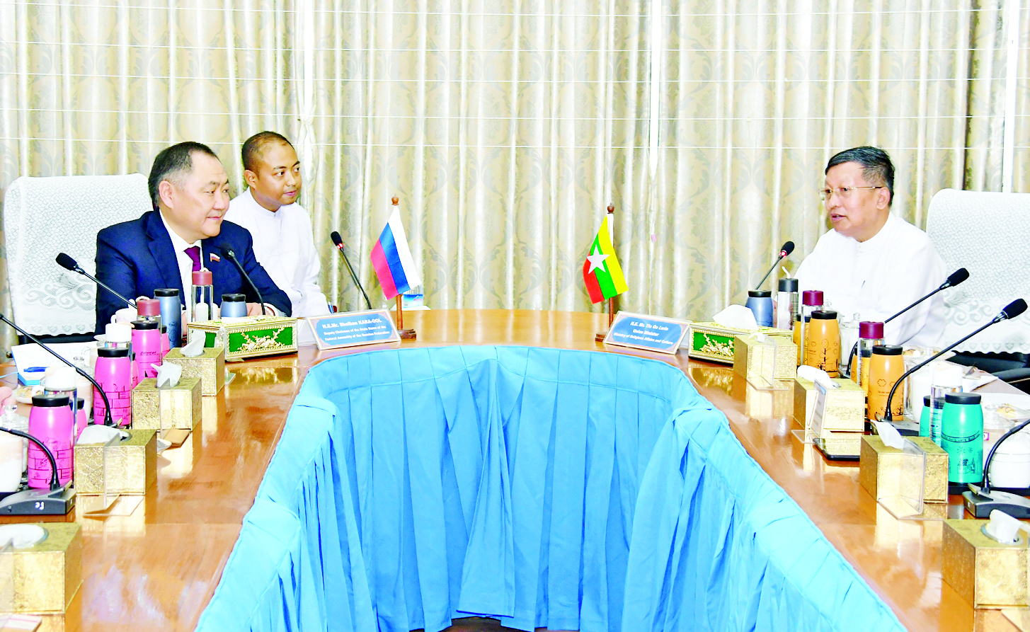 သာသနာရေးနှင့် ယဉ်ကျေးမှုဝန်ကြီးဌာန ပြည်ထောင်စုဝန်ကြီး ဦးတင်ဦးလွင်သည် ရုရှားဖက်ဒရေးရှင်းနိုင်ငံ ဒူးမားလွှတ်တော်ဒုတိယဥက္ကဋ္ဌ H.E. Mr. Sholban Kara-Ool ဦးဆောင်သည့် ကိုယ်စားလှယ်အဖွဲ့ကို ယနေ့နံနက် ၁၀ နာရီ ၄၅ မိနစ်တွင် သာသနာရေးနှင့် ယဉ်ကျေးမှုဝန်ကြီးဌာန ရုံးအမှတ် (၃၅) နေပြည်တော် လောကနတ်ခန်းမ၌ လက်ခံ တွေ့ဆုံသည်။