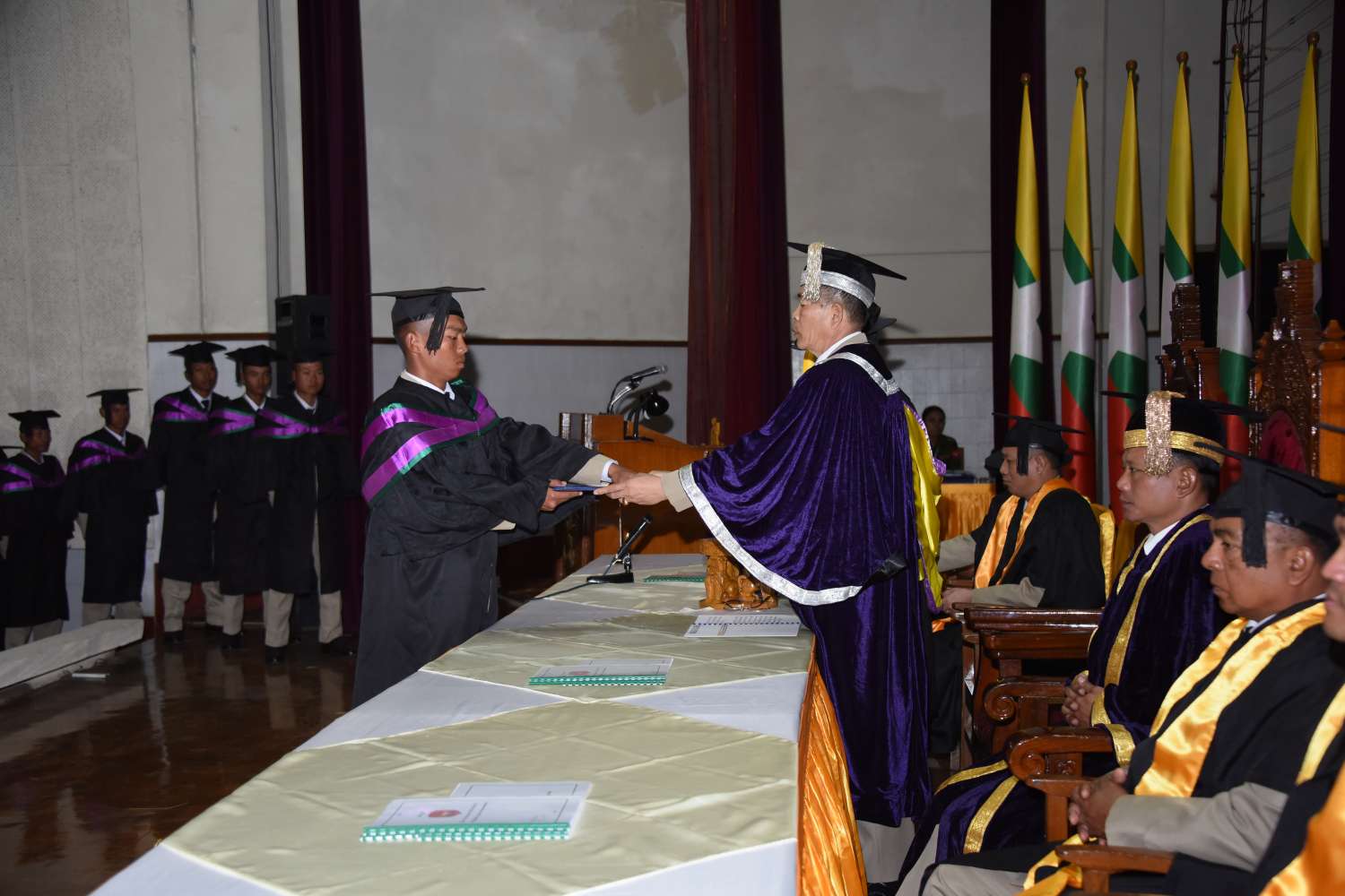 ဆက်လက်၍ ပါမောက္ခချုပ်က ဝိဇ္ဇာဘွဲ့ရရှိသူ ၄၇ ဦး၊ ဝါဏိဇ္ဇဘွဲ့ရရှိသူ ၈ ဦး၊ စီးပွားရေးပညာဘွဲ့ရရှိသူ ၁၅ ဦး၊ သိပ္ပံဘွဲ့ရရှိသူ ၁၃၂ ဦး၊ ကွန်ပျူတာသိပ္ပံဘွဲ့ရရှိသူ ၅၄ ဦးနှင့် ကွန်ပျူတာနည်းပညာဘွဲ့ရရှိသူ ၅၂ ဦး စုစုပေါင်း ၃၀၈ ဦးတို့အား ဘွဲ့လက်မှတ်များ ချီးမြှင့်အပ်နှင်းသည်။