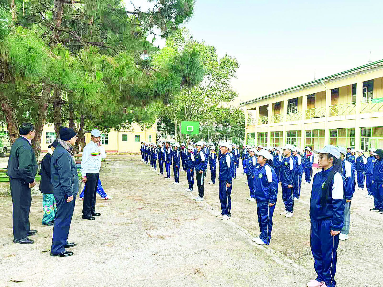 ထိုသို့ကြည့်ရှုစဉ် မိမိတို့ကိုယ်တိုင်ကျန်းမာကြံ့ခိုင်ရုံသာမက ဆရာ ဆရာမများဖြစ်လာကြသောအခါ တပည့်ကျောင်းသား ကျောင်းသူများကို အားကစားနှင့်ကာယပညာများ ပြန်လည်သင်ကြားပေးနိုင်ရန်အတွက် ယခုအချိန်ကတည်းက ကြိုးစားလေ့ကျင့်သင်ယူထားကြရန်မှာကြားပြီး ပညာရေးဝန်ကြီးဌာနက ဝယ်ယူဖြည့်တင်းပေးထားသော အားကစားပစ္စည်းများကို ကျောင်းအုပ်ကြီးနှင့် တာဝန်ရှိသူများအား လွှဲပြောင်းပေးအပ်ကြကာ ကျောင်းဝင်းအတွင်း လှည့်လည်ကြည့်ရှုစစ်ဆေးသည်။
