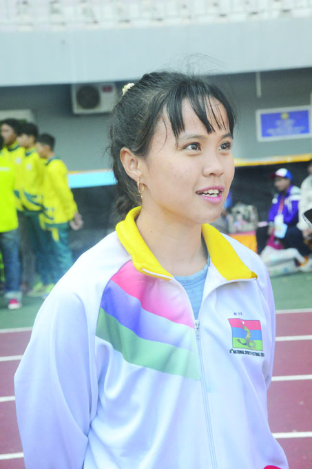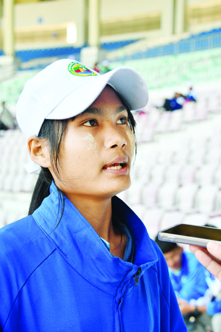 ကျွန်မက ဒီဇင်ဘာ ၁၀ ရက် ပြိုင်ပွဲဖြစ်တဲ့ အလျားသုံးဆင့်ခုန်မှာ ရွှေဆုရရှိထားပါတယ်။ မနက်ဖြန်မှာ မီတာ ၁၀၀ ပြိုင်ဖို့ရှိတယ်။ ကျွန်မအသက် ၁၈ နှစ်ကတည်းက ပြေးခုန်ပစ်စတင်ကစားခဲ့တာပါ။ အလျားခုန်မှာ တတိယ၊ လက်ဆင့်ကမ်းမှာ ဒုတိယနဲ့ သုံးဆင့်ခုန်မှာတော့ ရွှေရထားပြီးပြီ။ ပြေးခုန်ပစ်ကစားနည်းက ခန္ဓာကိုယ်ဖွဲ့စည်းပုံ၊ ကြိုးစားမှု၊ သက်လုံကောင်းမှု၊ Speed စတာတွေအားလုံးရှိမှာဖြစ်သလို ဆရာတွေရဲ့ စနစ်တကျလမ်းပြပေးမှုလည်း လိုအပ်ပါတယ်။ အဓိကကတော့ ခန္ဓာကိုယ်ကြံ့ခိုင်စေပြီး ကိုယ့်ကိုယ်ကိုယ် ယုံကြည်မှုရှိစေတဲ့ အားကစားနည်းမို့ သမီးသဘောကျနှစ်သက်ပါတယ်။ အမျိုးသားအားကစား ပွဲတော်ကြီးကျင်းပပေးလို့ သမီးကျေးဇူးအများကြီးတင်ပါတယ်။ နောက်နှစ်တွေကျင်းပရင် ဆုတံဆိပ်နဲ့ အရုပ်အပြင် ငွေသားဆုချီးမြှင့်တာမျိုးကိုလည်း ရနိုင်မယ်ဆိုရင် သမီးတို့အားကစားသမားတွေအားလုံး ပိုဝမ်းသာကြမယ်လို့ ထင်ပါတယ်။