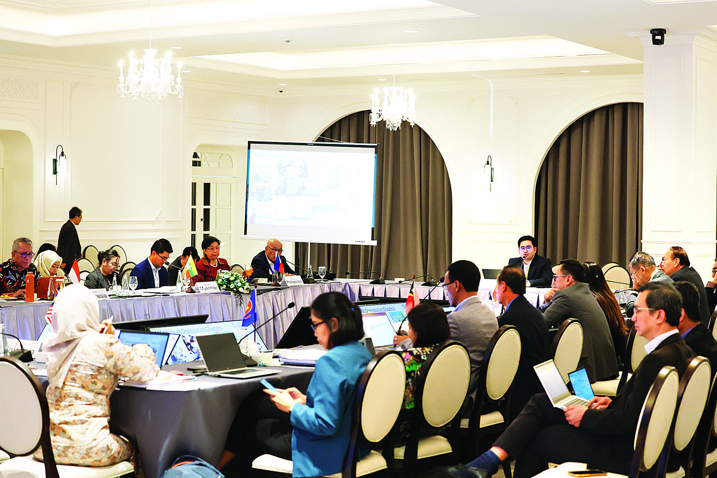 ဦးစွာ အာဆီယံစီးပွားရေးပေါင်းစည်းမှုဆိုင်ရာ အဆင့်မြင့်လုပ်ငန်းအဖွဲ့ဥက္ကဋ္ဌ၊ အာဆီယံလူမှု-ယဉ်ကျေးမှုအသိုက်အဝန်းဆိုင်ရာ မဟာဗျူဟာစီမံချက်ရေးဆွဲရေးဆိုင်ရာ လုပ်ငန်းအဖွဲ့၏ ပူးတွဲဥက္ကဋ္ဌများနှင့် အာဆီယံပေါင်းစည်းဆက်သွယ်ညှိနှိုင်းရေးဆိုင်ရာ ကော်မတီဥက္ကဋ္ဌများ မျက်နှာစုံညီအစည်းအဝေး ပြုလုပ်ခဲ့ရာ သက်ဆိုင်ရာကိုယ်စားလှယ်များက သက်ဆိုင်ရာမဏ္ဍိုင်အလိုက် မဟာဗျူဟာစီမံကိန်းများရေးဆွဲမှု၏ တိုးတက်မှုအခြေအနေကို အမြင်ချင်းဖလှယ်ဆွေးနွေးခဲ့သည်။