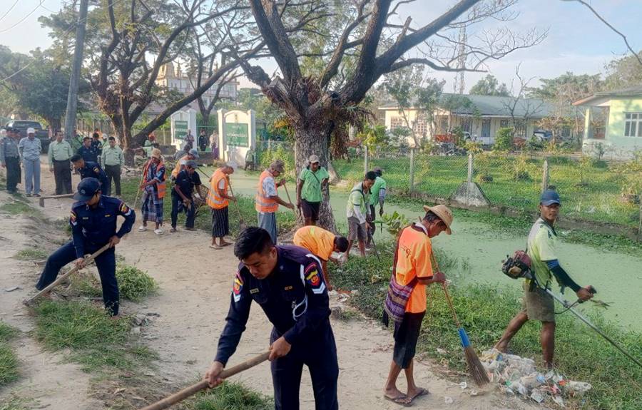 ထိုသို့ ဆောင်ရွက်ပေးလျက်ရှိရာ ယနေ့တွင် ရန်ကုန်တိုင်းဒေသကြီး၊ မှော်ဘီမြို့နယ် အပါအဝင် မြို့နယ် (၁၄) မြို့နယ်တို့၌ သက်ဆိုင်ရာ တိုင်းစစ်ဌာနချုပ်များမှ နယ်မြေခံတပ်မတော်သားများ၊ မြန်မာနိုင်ငံရဲတပ်ဖွဲ့ဝင်များ၊ မီးသတ်တပ်ဖွဲ့ဝင်များ၊ ဌာနဆိုင်ရာဝန်ထမ်းများ၊ ဒေသခံပြည်သူများ၊ လူမှုရေးအသင်းအဖွဲ့များက အခြေခံပညာကျောင်းများ အတွင်း/အပြင်ရှိ ချုံနွယ်ပေါင်းမြက်များ ခုတ်ထွင်ရှင်းလင်းခြင်း၊ အမှိုက်များရှင်းလင်းခြင်း၊ ရေစီးရေလာကောင်းမွန်စေရေး ရေနုတ်မြောင်းများ တူးဖော်ပေးခြင်း၊ ရေကန်များတွင် အဘိတ်ဆေးများခတ်ပေးခြင်း၊ ခြင်ခိုအောင်းနိုင်သည့်နေရာများအား ခြင်ဆေးဖျန်းခြင်းနှင့် ကျန်းမာရေးအသိပညာပေး လက်ကမ်းစာစောင်များ ဖြန့်ဝေပေးခြင်းများကို စုပေါင်းဆောင်ရွက်ပေးကြသည်။