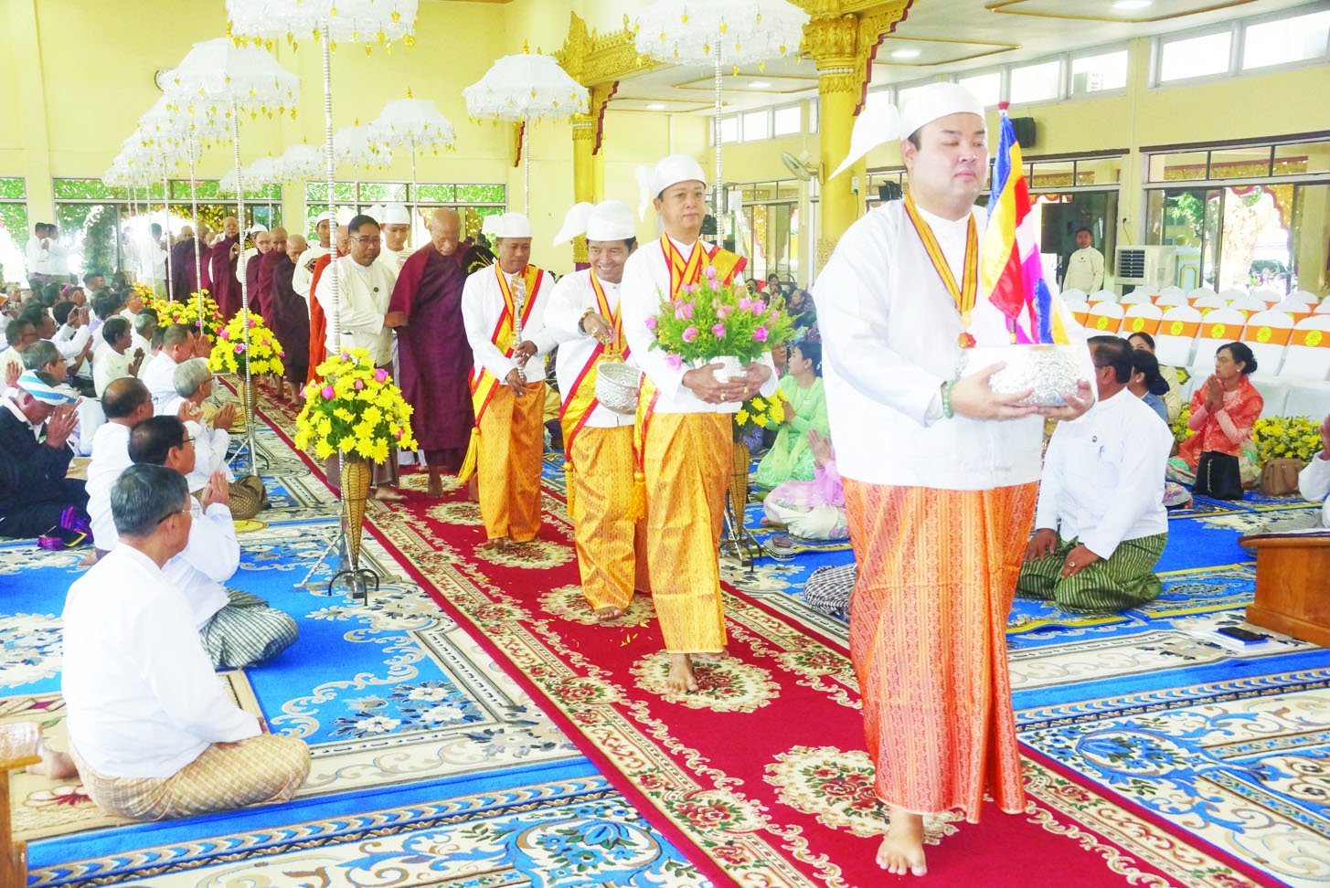 ဆက်လက်၍ ပြည်ထောင်စုဝန်ကြီးနှင့် အခမ်းအနားတက်ရောက်လာကြသူများသည် ဆရာတော်ဘဒ္ဒန္တစန္ဒနသာရထံမှ အနုမောဒနာတရားနာကြားပြီး ရေစက်သွန်းလောင်း အမျှပေးဝေကြကာ ဆရာတော်ကြီးများ အမှူးပြုသော သံဃာတော်များအား ဆွမ်းဆန်တော်လောင်းလှူပူဇော်ကြသည်။