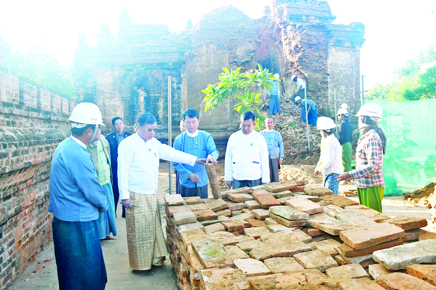ယင်းနောက် ပြည်ထောင်စုဝန်ကြီးသည် စက်တင်ဘာလအတွင်း လေပြင်းတိုက်ခတ်ခြင်းနှင့် မိုးသည်းထန်စွာရွာသွန်းခြင်းတို့ကြောင့် တောင်ဘီကျေးရွာအနောက်ဘက် နတ်ထောင့်ကျောင်းတိုက် အနီးရှိ ရှေးဟောင်းဘုရားအမှတ်-၁၉၈၃ (ဆုတောင်းပြည့်ဘုရား)၏ တိုက်မမြောက်ဘက်နံရံနှင့် တိုက်မအထက်ရှိ ကွမ်းတောင်နှင့် အထွတ်စေတီတို့ ထိခိုက်ပျက်စီးခဲ့ရာ ကနဦးပြုပြင်ထိန်းသိမ်းရေးလုပ်ငန်းအနေဖြင့် သဲခဲများ ရှင်းလင်းခြင်း ဆောင်ရွက်လျက်ရှိသည့်လုပ်ငန်းခွင်ကိုလည်းကောင်း၊ ရွာဟောင်းကြီးဘုရားအနီးရှိ ရွာဟောင်းကြီးရေကန်ကိုလည်းကောင်း ကြည့်ရှုစစ်ဆေးပြီး ရှေးမူမပျက် စနစ်တကျ ထိန်းသိမ်းဆောင်ရွက်သွားရန် မှာကြားခဲ့ကြောင်း သိရသည်။