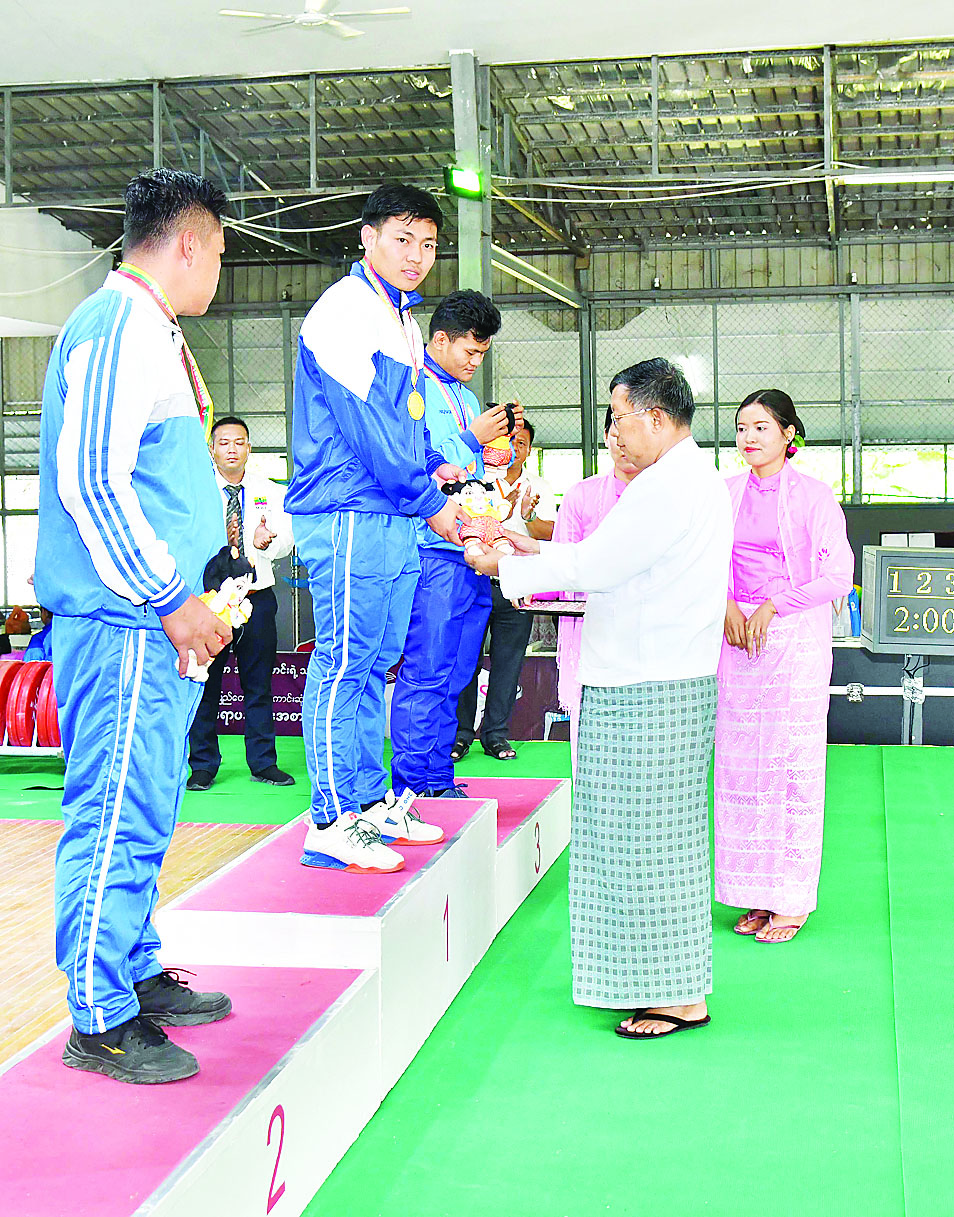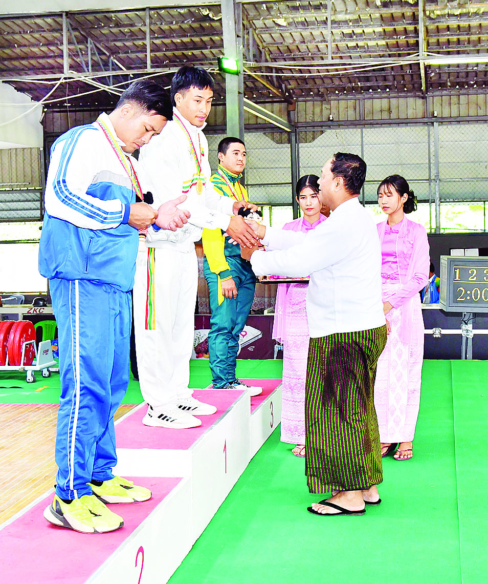 ယင်းနောက် ပြည်ထောင်စုဝန်ကြီးဦးလှမိုးက အမျိုးသား(၇၃)ကီလိုတန်း အလေးမပြိုင်ပွဲတွင် ပထမဆုရရှိသည့် ပြည်ထောင်စုနယ်မြေနေပြည်တော်၊ ဒုတိယဆုရရှိသည့် ရန်ကုန်တိုင်းဒေသကြီးနှင့် တတိယဆုရရှိသည့် မကွေးတိုင်းဒေသကြီးတို့မှ ပြိုင်ပွဲဝင်များကိုလည်းကောင်း၊ အမျိုးသား(၈၁)ကီလိုတန်း အလေးမပြိုင်ပွဲတွင် ပထမဆုရရှိသည့် ရှမ်းပြည်နယ်၊ ဒုတိယဆုရရှိသည့် ဧရာဝတီတိုင်းဒေသကြီးနှင့် တတိယဆုရရှိသည့် ရန်ကုန်တိုင်းဒေသကြီးတို့မှ ပြိုင်ပွဲဝင်များကိုလည်းကောင်း ဂုဏ်ပြုဆုတံဆိပ်နှင့် အမျိုးသားအားကစားပွဲတော် အထိမ်းအမှတ်အရုပ်များအား ပေးအပ်ချီးမြှင့်ကြသည်။