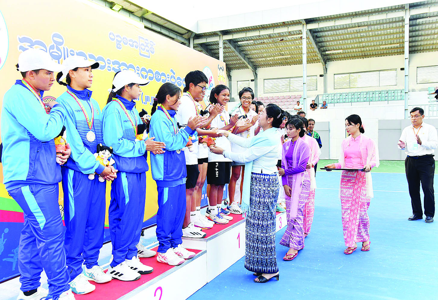 ယင်းနောက် သာသနာရေးနှင့်ယဉ်ကျေးမှုဝန်ကြီးဌာန ဒုတိယဝန်ကြီး ဒေါ်နုမြဇံကတတိယဆုရရှိသည့် ဧရာဝတီတိုင်းဒေသကြီးအသင်းမှ အားကစားသမားများကိုလည်းကောင်း၊ ပြည်ထောင်စုဝန်ကြီး ဦးမင်းသိန်းဇံက ဒုတိယဆုရရှိသည့် ရှမ်းပြည်နယ်အသင်းမှ အားကစားသမားများကိုလည်းကောင်း၊ ပြည်ထောင်စုဝန်ကြီးနှင့် ပြည်ထောင်စုရှေ့နေချုပ် ဒေါက်တာသီတာဦးက ပထမဆုရရှိသည့် မန္တလေးတိုင်းဒေသကြီးအသင်းမှ အားကစားသမားများကိုလည်းကောင်း တစ်ဦးချင်းဂုဏ်ပြုဆုတံဆိပ်နှင့် အမျိုးသားအားကစားပွဲတော် အထိမ်းအမှတ်အရုပ်များအား ပေးအပ်ချီးမြှင့်ကြသည်။