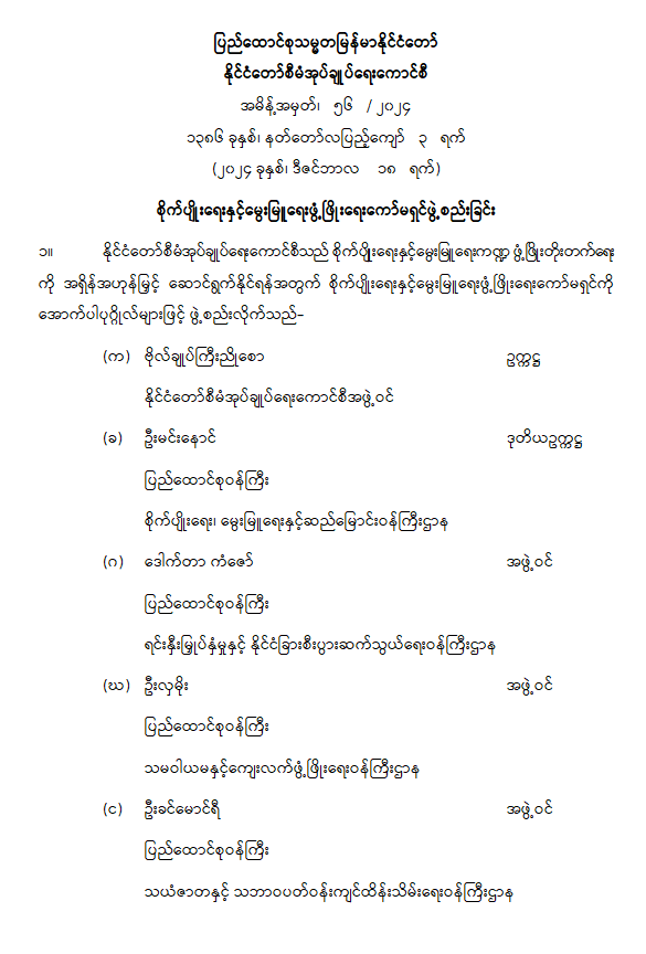စိုက်ပျိုးရေးနှင့်မွေးမြူရေးဖွံ့ဖြိုးရေးကော်မရှင်ဖွဲ့စည်းခြင်း
