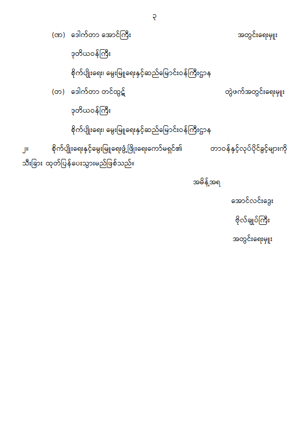 ဝန်ကြီးဌာန ကြေညာချက်များ