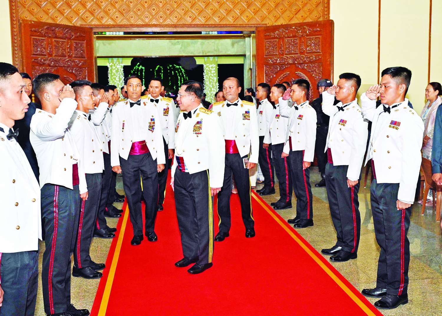 ဦးစွာ နိုင်ငံတော်စီမံအုပ်ချုပ်ရေးကောင်စီဥက္ကဋ္ဌ တပ်မတော်ကာကွယ်ရေးဦးစီးချုပ်က သင်တန်းဆင်းအရာရှိများအား တစ်ဦးချင်း ရင်းရင်းနှီးနှီး လိုက်လံနှုတ်ဆက်သည်။ ထို့နောက် နိုင်ငံတော်စီမံအုပ်ချုပ်ရေးကောင်စီဥက္ကဋ္ဌ တပ်မတော်ကာကွယ်ရေးဦးစီးချုပ်နှင့် အဖွဲ့ဝင်များသည် သင်တန်းဆင်းအရာရှိများ၊ ညစာစားပွဲ တက်ရောက်လာကြသူများနှင့်အတူ ဂုဏ်ပြုညစာကို အတူတကွ သုံးဆောင်ကြသည်။
