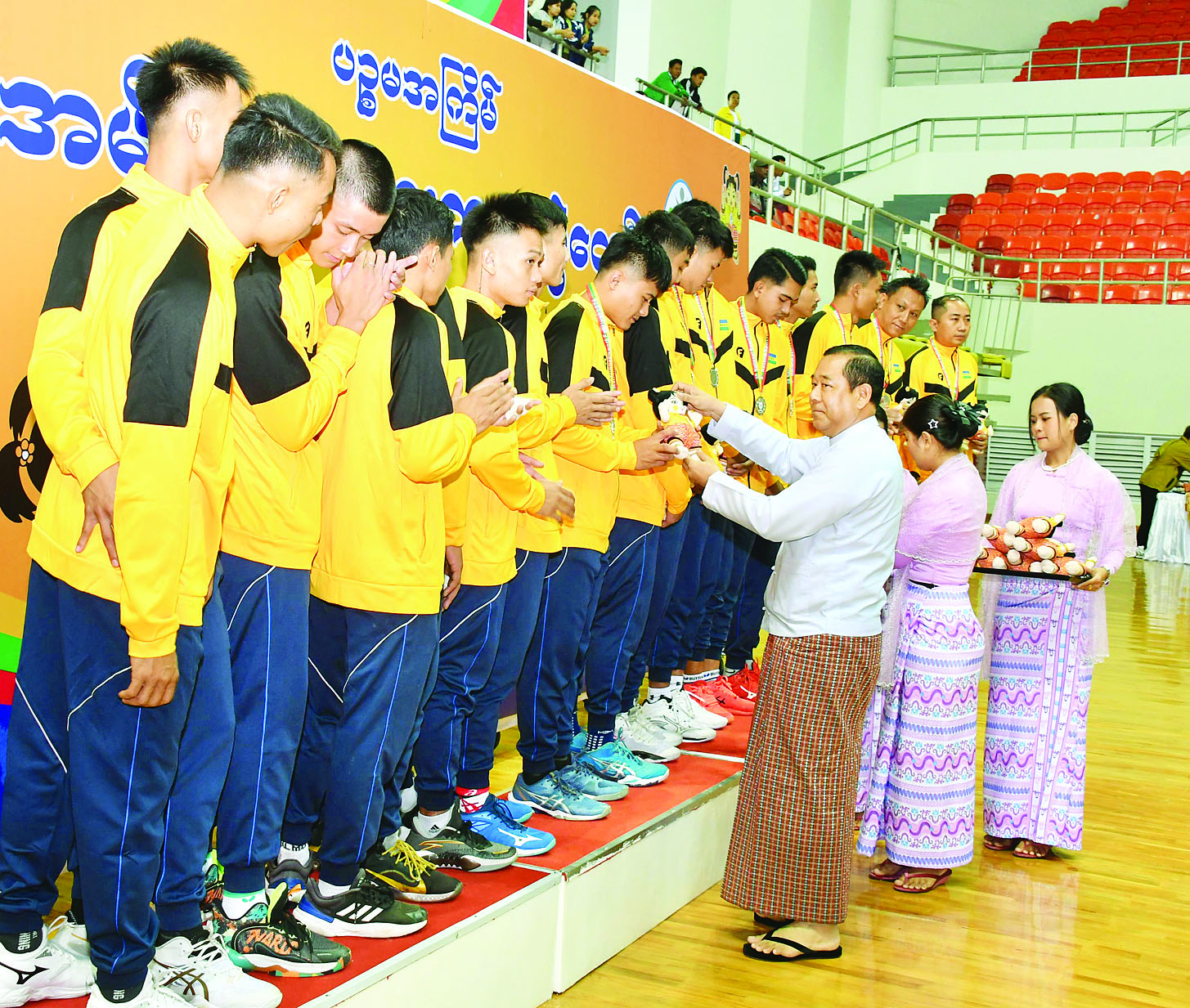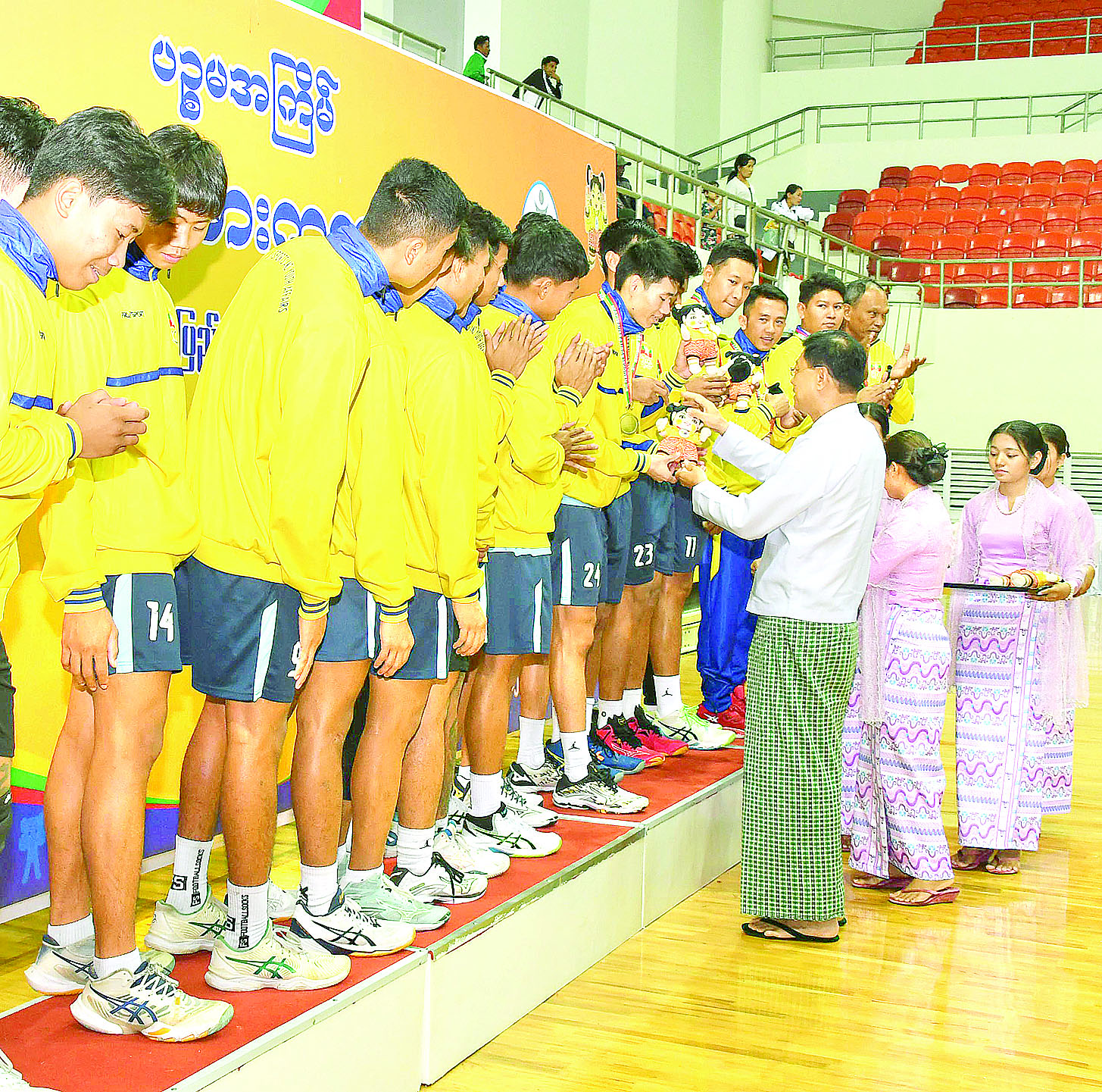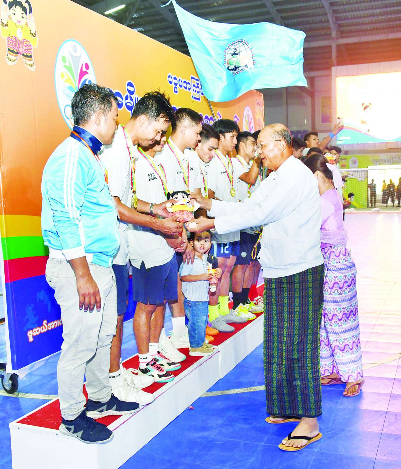 ဆက်လက်၍ ပြည်ထောင်စုဝန်ကြီး ဒုတိယဗိုလ်ချုပ်ကြီး ထွန်းထွန်းနောင်က အမျိုးသားဘော်လီဘောပြိုင်ပွဲတွင် ဒုတိယဆုရရှိသည့် ပြည်ထဲရေးဝန်ကြီး ဌာနအသင်းကိုလည်းကောင်း၊ နိုင်ငံတော်စီမံအုပ်ချုပ်ရေးကောင်စီဝင် ပြည်ထောင်စုဝန်ကြီး ဒုတိယဗိုလ်ချုပ်ကြီး ရာပြည့်က အမျိုးသမီးဘော်လီဘောပြိုင်ပွဲတွင် ပထမဆုရရှိသည့် ကာကွယ်ရေးဝန်ကြီးဌာနအသင်းကိုလည်းကောင်း၊ နိုင်ငံတော်စီမံအုပ်ချုပ်ရေးကောင်စီဝင် ဒုတိယဝန်ကြီးချုပ်နှင့် ပြည်ထောင်စုဝန်ကြီး ဗိုလ်ချုပ်ကြီး မြထွန်းဦးက အမျိုးသားဘော်လီဘောပြိုင်ပွဲတွင် ပထမဆုရရှိသည့် အားကစားနှင့် လူငယ်ရေးရာဝန်ကြီးဌာနအသင်းကိုလည်းကောင်း တစ်ဦးချင်းဂုဏ်ပြုဆုတံဆိပ်နှင့် အမျိုးသားအားကစားပွဲတော် အထိမ်းအမှတ်အရုပ်များ ပေးအပ်ချီးမြှင့်ကြသည်။