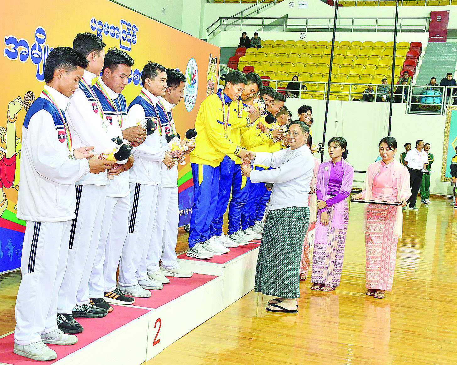 ၂၀၂၄ ခုနှစ် ပဉ္စမအကြိမ် အမျိုးသားအားကစားပွဲတော် ဝန်ကြီးဌာနအဆင့်နှင့် ပြည်နယ်နှင့် တိုင်းဒေသကြီးအဆင့်ပြိုင်ပွဲများ၏ ဗိုလ်လုပွဲနှင့် ဆုချီးမြှင့်ပွဲအခမ်းအနားများကို ယနေ့တွင် နေပြည်တော်ရှိ သက်ဆိုင်ရာအားကစားရုံများ၌ ကျင်းပရာ နိုင်ငံတော်စီမံအုပ်ချုပ်ရေးကောင်စီဝင်များ တက်ရောက်ကြည့်ရှုအားပေးပြီး ဆုများပေးအပ်ချီးမြှင့်ကြသည်။