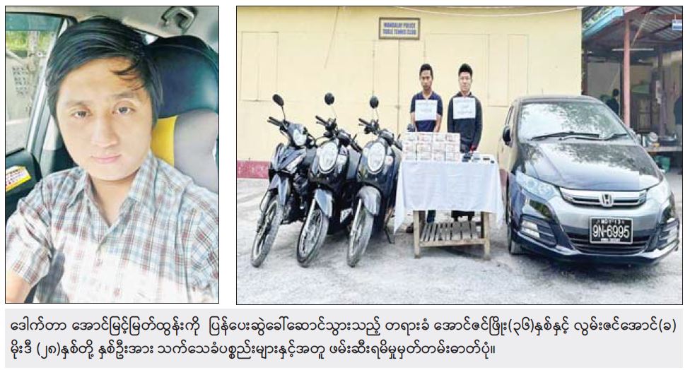 မန္တလေးတိုင်းဒေသကြီး ချမ်းမြသာစည်မြို့နယ် အောင်ပင်လယ်ရပ်ကွက်နေ ဦးအောင်ကျော်စိုး (၆၇) နှစ်ထံသို့ ဒီဇင်ဘာ ၁၇ ရက် နံနက် ၉ နာရီ မိနစ် ၂၀ တွင် အမျိုးသားတစ်ဦး (စိစစ်ဆဲ) မှ ဖုန်းအမှတ် ၀၉၆၈၁၂၀၁၄၅၇ ဖြင့်ဆက်သွယ်၍ သားဖြစ်သူ ဒေါက်တာအောင်မြင့်မြတ်ထွန်းအား ပြန်ပေးဆွဲထားကြောင်း၊ အသက်မသေစေလိုက ငွေကျပ်သိန်း ၃၀၀၀ ကို မဟာမြတ်မုနိဘုရားကြီး တောင်ဘက်မုခ်သို့လာထားရန်၊ လာထားသောငွေကို ၎င်းတို့လက်ခံရရှိပြီးမှသာ ဖုန်းဆက်သွယ်၍ သားဖြစ်သူအား ပြန်လွှတ်ပေးမည်ဖြစ်ကြောင်း၊ မည်သည့်အဖွဲ့အစည်းကိုမျှ တိုင်တန်းခြင်းမပြုရန်ပြောသဖြင့် ဦးအောင်ကျော်စိုးသည် မည်သူ့ထံမျှ တိုင်တန်းခြင်းမပြုဘဲ ၎င်းချိန်းဆိုသည့်နေရာသို့သွားရောက်၍ ငွေကျပ်သိန်း ၃၀၀၀ ကို ပြန်ပေးဆွဲသူထားခိုင်းသည့်နေရာသို့ ပို့ဆောင်ခဲ့ပြီးနောက် ငွေလက်ခံရရှိကြောင်း ပြန်ဆက်သွယ်သော်လည်း သားဖြစ်သူ ဒေါက်တာ အောင်မြင့်မြတ်ထွန်းမှာ နေအိမ်သို့ ပြန်လည်ရောက်ရှိလာခြင်း မရှိသဖြင့် ဒီဇင်ဘာ ၁၈ ရက် မွန်းလွဲ ၁ နာရီတွင် အောင်ပင်လယ်နယ်မြေရဲစခန်းသို့ လာရောက်တိုင်တန်းခဲ့သဖြင့် အောင်ပင်လယ်နယ်မြေရဲစခန်း (ပ)၂၆၀/၂၀၂၄၊ ရာဇသတ်ကြီးပုဒ်မ ၃၆၅/၃၈၇/၁၁၄ ဖြင့် အမှုရေးဖွင့်ဆောင်ရွက်ခဲ့သည်။