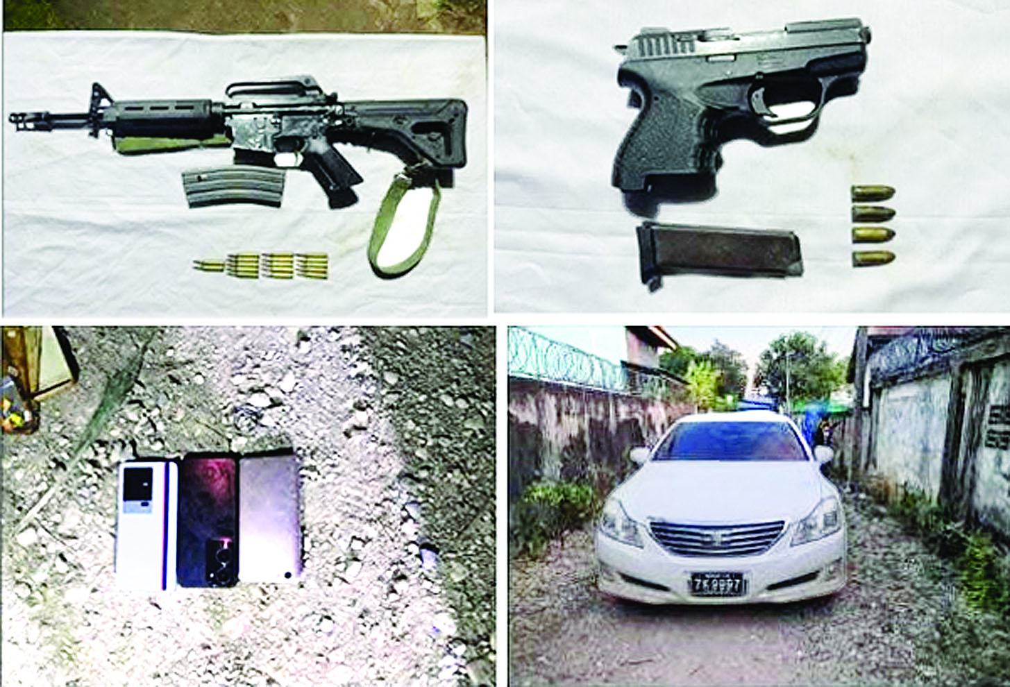 ထိုသို့ ဝင်ရောက်စီးနင်းရှာဖွေစဉ် အဆိုပါနေအိမ်အတွင်းမှ ပြစ်မှုကျူးလွန် သူတရားခံများက သေနတ်များဖြင့် စတင်ပစ်ခတ်ကာ ထွက်ပြေးရန် ကြိုးစားသဖြင့် လုံခြုံရေးတပ်ဖွဲ့ဝင်များက ပြန်လည်ခုခံ ပစ်ခတ်ဖမ်းဆီးခဲ့ရာ ပြစ်မှုကျူးလွန်ခဲ့သူတရားခံများဖြစ်ကြသည့် ကျန်းဘီယင်း (စိစစ်ဆဲ) နှင့် မောင်မောင်ဦး (စိစစ်ဆဲ) တို့ပါ အမျိုးသားခြောက်ဦးကို အသေပစ်ခတ်ဖမ်းဆီးရမိခဲ့ပြီး အခင်းဖြစ်နေရာအား အသေးစိတ်စစ်ဆေးရှာဖွေမှုများဆောင်ရွက်ခဲ့ရာ ပြစ်မှုကျူးလွန်စဉ်က အသုံးပြုခဲ့သည့် ZORAKI M906-T ပွိုင့် ၃၈၀ အမျိုးအစား ပစ္စတိုသေနတ် တစ်လက်၊ ၎င်းကျည်လေးတောင့်၊ ကျည်အိမ်တစ်ခု၊ M-16 အမျိုးအစား သေနတ်တစ်လက်၊ ၎င်းကျည် ၁၇ တောင့်၊ ကျည်အိမ်တစ်ခု၊ မော်တော်ယာဉ်နံပါတ် ပြားခြောက်ခု၊ အနက်ရောင်ကျည်ကာ အင်္ကျီနှစ်ထည်၊ လုံခြုံရေးတပ်ဖွဲ့ဝင်များ ဝတ်ဆင်သည့် ယူနီဖောင်းတစ်ထည်၊ ခဲရောင်မိုးကာအင်္ကျီတစ်ထည်၊ အနွေးအင်္ကျီတစ်ထည်၊ ဦးထုပ်သုံးလုံး၊ နိုင်ငံသား စိစစ်ရေးကတ်ပြားတစ်ခု၊ ယာဉ်မောင်းလိုင်စင်နှစ်ခု၊ ၅ ဒသမ ၅၆ ကျည်ခွံလေးခု၊ ပစ္စတိုကျည်ခွံလေးခု၊ SHN-12 7K-9997 TOYOTA CROWN Royal Saloon အဖြူရောင်မော်တော်ယာဉ်တစ်စီး၊ လက်ကိုင်ဖုန်းမျိုးစုံသုံးလုံး၊ WY စိတ်ကြွရူးသွပ်ဆေးပြား ၆၅၀၀၀ တို့ကို တွေ့ရှိသိမ်းဆည်းရမိခဲ့ပြီး ပြန်ပေးဆွဲ ဖမ်းဆီးခံရသူ ဦးရန်ထင်ချန်းအား ပြန်လည်ကယ်တင်နိုင်ခဲ့ကြောင်း သိရသည်။