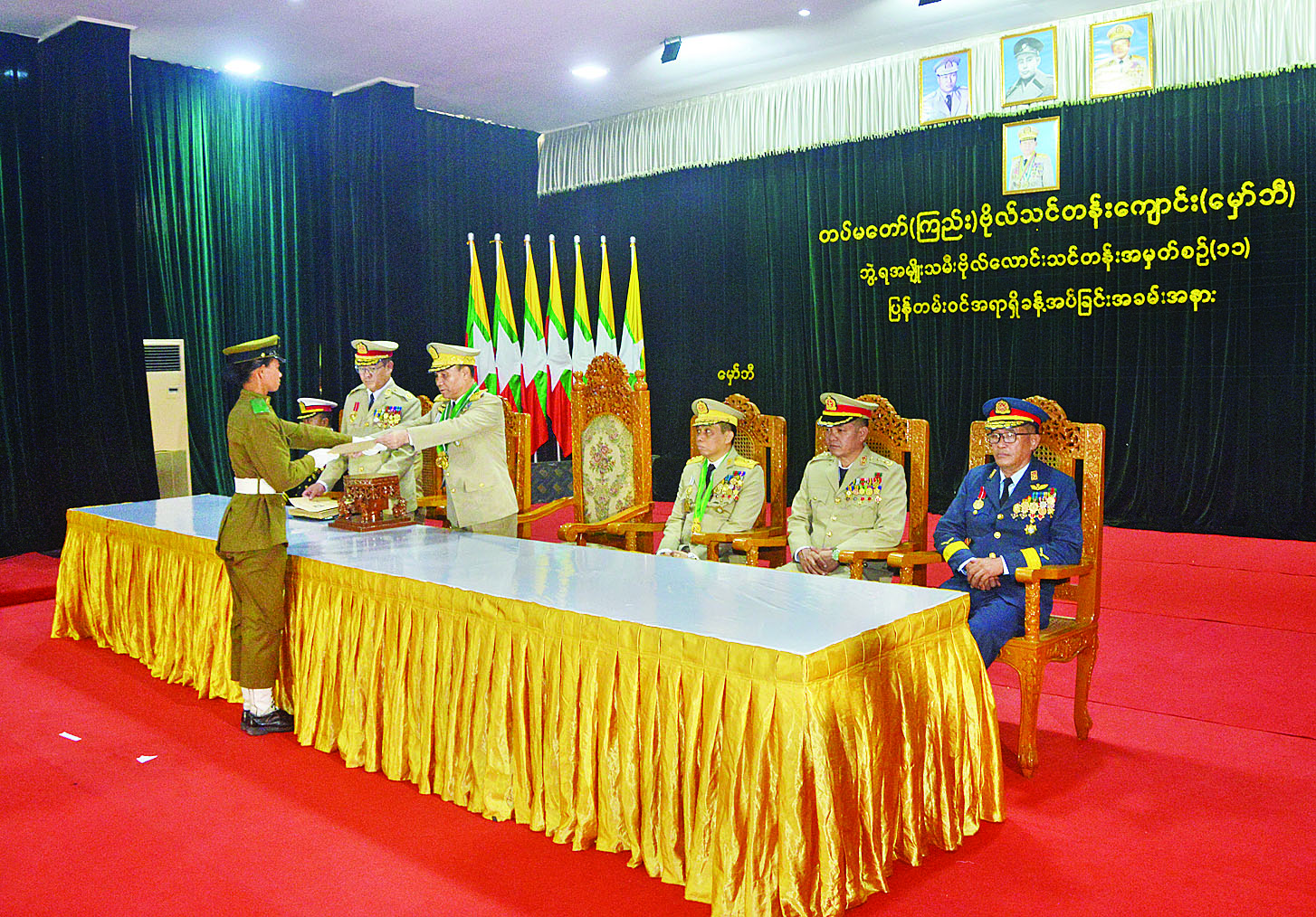 ယနေ့ကျင်းပပြုလုပ်သည့် ပြန်တမ်း၀င်အရာရှိခန့်အပ်ခြင်းအခမ်းအနားတွင် ကျောင်းဆင်းဘွဲ့ရ အမျိုးသမီးဗိုလ်လောင်းများအား ဒုတိယဗိုလ်အဆင့်ဖြင့် ရာထူးခန့်အပ်ပေးအပ်ခြင်းဖြစ်သည်။ ဘွဲ့ရအမျိုးသမီးဗိုလ်လောင်းသင်တန်းအား တပ်မတော်အတွက်အရည်အချင်းပြည့်၀သည့် ဦးစီးအရာရှိများ မွေးထုတ်ပေးရန်ဆိုသည့် ရည်ရွယ်ချက်ဖြင့် တပ်မတော်(ကြည်း) ဗိုလ်သင်တန်းကျောင်း (မှော်ဘီ)၌ ၂၀၁၄ ခုနှစ်မှ စတင်ဖွင့်လှစ်သင်ကြားခဲ့ပြီး ယခုအခါဘွဲ့ရအမျိုးသမီး ဗိုလ်လောင်းသင်တန်းအမှတ်စဉ် (၁၁)အထိ လေ့ကျင့်မွေးထုတ်ပေးနိုင်ခဲ့ပြီးဖြစ်ကြောင်းနှင့် သင်တန်းဆင်းအမျိုးသမီးအရာရှိများအနေဖြင့် သက်ဆိုင်ရာ (ကြည်း၊ ရေ၊ လေ) လက်ရုံးတပ်ဖွဲ့များတွင် အသီးသီးတာ၀န်ထမ်းဆောင်ကြရမည်ဖြစ်ကြောင်း သတင်းရရှိသည်။