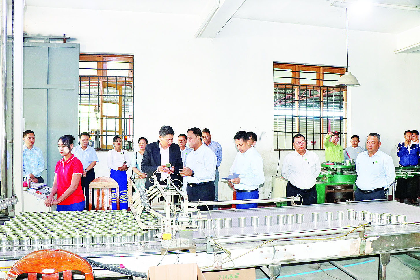 ဦးစွာ ပြည်ထောင်စုဝန်ကြီးနှင့်အဖွဲ့သည် လှိုင်သာယာမြို့နယ်ရွှေလင်ပန်းစက်မှုဇုန်ရှိ Wei Wang ပဲငံပြာရည်နှင့် နို့ဆီဘူး၊ နို့စိမ်းဘူး၊ အသားဘူးခွံထုတ်လုပ်မှုစက်ရုံသို့ ရောက်ရှိပြီး စက်ရုံမှထွက်ရှိလာသော သံဘူးများကို နို့ထွက်ပစ္စည်း ထုတ်လုပ်သည့် စက်ရုံများနှင့် ချိတ်ဆက်ဆောင်ရွက်ပေးမည်ဖြစ်ကြောင်း ဆွေးနွေးမှာကြားပြီး လုပ်ငန်းရှင်များ၏ တင်ပြချက်များအပေါ် လိုအပ်သည်များ ပေါင်းစပ်ညှိနှိုင်းဆောင်ရွက်ပေးကာ စက်ရုံအတွင်း သံဘူးထုတ်လုပ်နေမှု အဆင့်ဆင့်ကို လှည့်လည်ကြည့်ရှုစစ်ဆေးသည်။