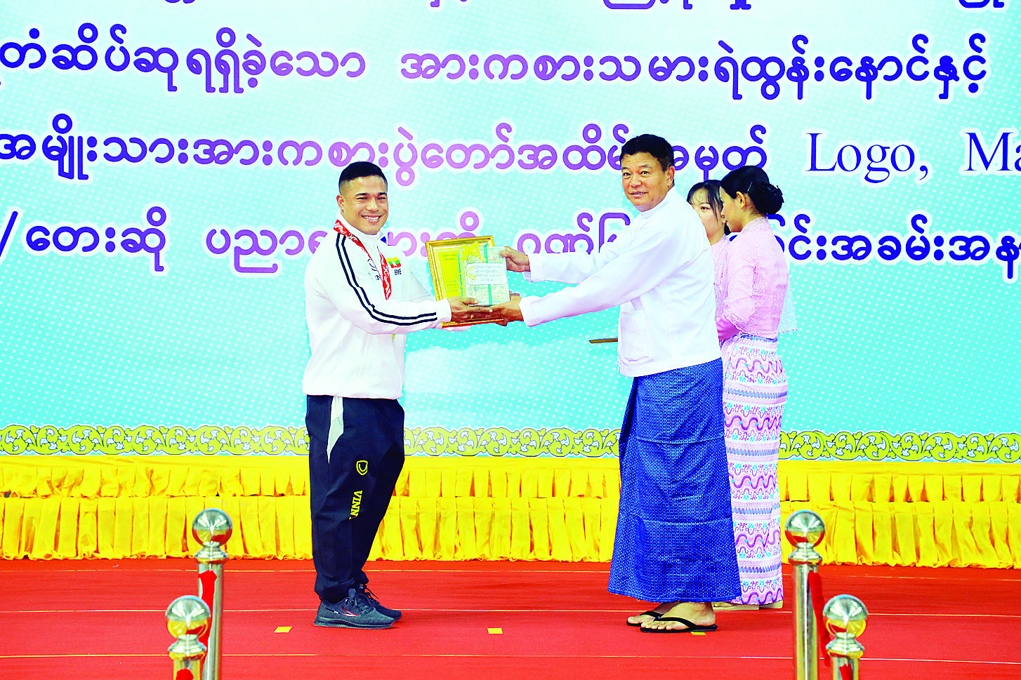 (၁၅)ကြိမ်မြောက် ကမ္ဘာ့ကာယဗလနှင့် ကာယကြံ့ခိုင်မှုအားကစားပြိုင်ပွဲတွင် ရွှေတံဆိပ်ဆုရရှိခဲ့သော အားကစားသမား ရဲထွန်းနောင်နှင့် ပဉ္စမအကြိမ် အမျိုးသားအားကစား ပွဲတော်အထိမ်းအမှတ် Logo, Mascot နှင့် တေးရေး/တေးဆို ပညာရှင်များ ဂုဏ်ပြုချီးမြှင့်ပွဲ အခမ်းအနားကို ယနေ့နံနက်ပိုင်းတွင် နေပြည်တော်ဝဏ္ဏသိဒ္ဓိ အားကစားရုံ(C)ရုံ၌ ကျင်းပသည်။