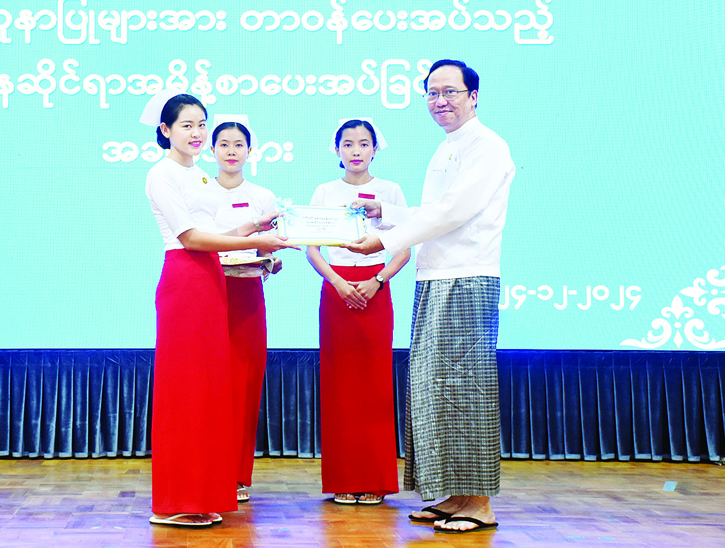 ယနေ့အခမ်းအနားတွင် နေပြည်တော်၊ တိုင်းဒေသကြီး/ပြည်နယ်အသီးသီးမှ သူနာပြု-သားဖွား ဒီပလိုမာအောင်မြင်သူ စုစုပေါင်း ၁၇၇၅ ဦးကို သစ်လွင်သူနာပြုများအဖြစ် ခန့်အပ်တာဝန် ပေးအပ်ခြင်းဖြစ်ပြီး ယခုနှစ်အောက်တိုဘာလကလည်း သူနာပြုသိပ္ပံဘွဲ့၊ သွားကျန်းမာရေးဒီပလိုမာရရှိသူ ၁၅၄ ဦးကို သစ်လွင်သူနာပြုများအဖြစ် ခန့်အပ်တာဝန်ပေးအပ်ခဲ့ပြီးဖြစ်ကြောင်း သိရသည်။