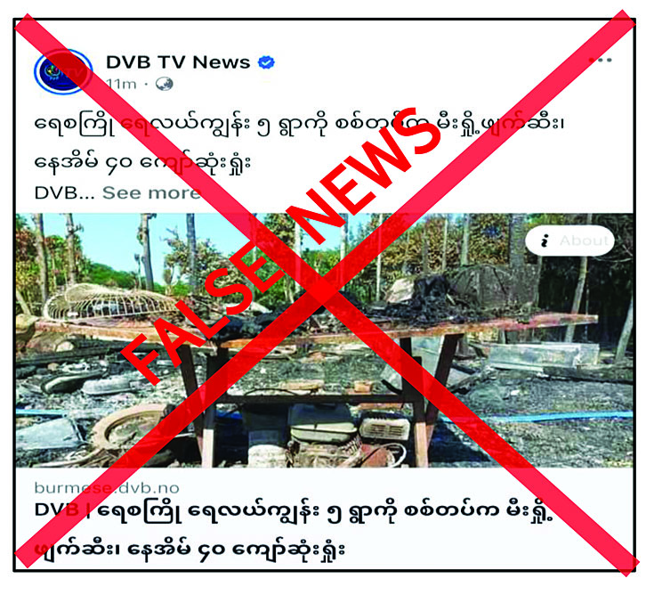 မကွေးတိုင်းဒေသကြီး ရေစကြိုမြို့နယ် ရေလယ်ကျွန်းဒေသရှိ ကျေးရွာငါးရွာကို လုံခြုံရေးတပ်ဖွဲ့ဝင်များက မီးရှို့ဖျက်ဆီးခဲ့သဖြင့် နေအိမ် ၄၀ ကျော် မီးလောင်ပျက်စီးခဲ့ကြောင်း တရားမဝင်ပြည်ဖျက်မီဒီယာများက မဟုတ်မမှန်ရေးသားဖြန့်ဝေနေသည်ကို တွေ့ရှိရသည်။