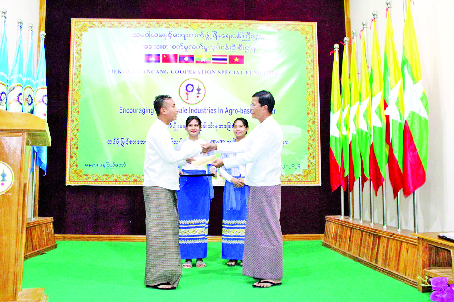 သမဝါယမနှင့်ကျေးလက်ဖွံ့ဖြိုးရေးဝန်ကြီးဌာန အသေးစားစက်မှုလက်မှုလုပ်ငန်းဦးစီးဌာန၏ စိုက်ပျိုးရေးကုန်ကြမ်းသီးနှံ အခြေခံတန်ဖိုးမြင့်စားသောက်ကုန်ထုတ်လုပ်မှုနည်းပညာ(ToT) သင်တန်းဆင်းပွဲအခမ်းအနားကို ယနေ့မွန်းလွဲပိုင်းက အဆိုပါဦးစီးဌာနရှိ လေ့ကျင့်ပျိုးထောင်ရေးစင်တာ၌ ကျင်းပရာ သမဝါယမနှင့်ကျေးလက်ဖွံ့ဖြိုးရေးဝန်ကြီးဌာန ဒုတိယဝန်ကြီး ဦးမြင့်စိုး၊ ဒုတိယညွှန်ကြားရေးမှူးချုပ်များ၊ သင်တန်းသား သင်တန်းသူများနှင့် တာဝန်ရှိသူများ တက်ရောက်ကြသည်။
