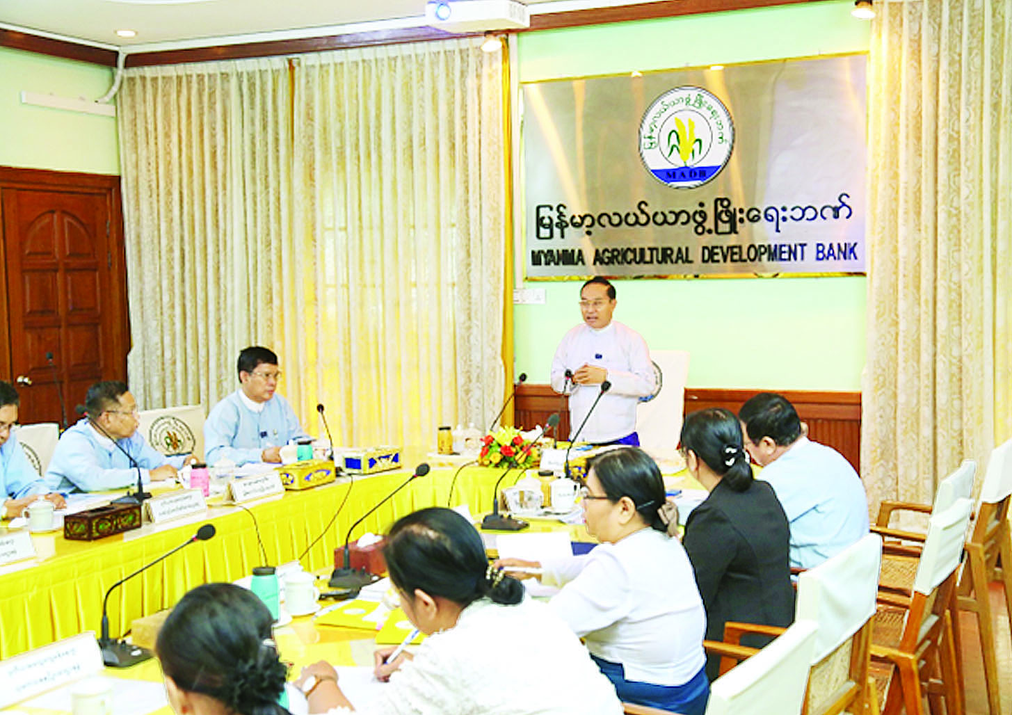 တွေ့ဆုံစဉ် မြန်မာ့လယ်ယာဖွံ့ဖြိုးရေးဘဏ် ဦးဆောင်ညွှန်ကြားရေးမှူးနှင့် အထွေထွေမန်နေဂျာများ၊ ဌာနတာဝန်ခံ ဒုတိယအထွေထွေမန်နေဂျာများက ဘဏ်လုပ်ငန်းဆောင်ရွက်နေမှုများကို ရှင်းလင်းတင်ပြရာ ဒုတိယဝန်ကြီးက မြန်မာ့လယ်ယာဖွံ့ဖြိုးရေးဘဏ်သည် ခေတ်အဆက်ဆက်တွင် နိုင်ငံတစ်ဝန်းလုံးရှိ တောင်သူလယ်သမားများကို စိုက်ပျိုးစရိတ်အရင်းအနှီးများ အဓိကပံ့ပိုးထုတ်ချေးပေးလျက်ရှိသည့် နိုင်ငံတော်ဘဏ်ကြီး တစ်ဘဏ်ဖြစ်ကြောင်း၊ Customer များဖြစ်ကြသည့် တောင်သူများအပေါ် စေတနာထား၍ ဘဏ်လုပ်ငန်းဝန်ဆောင်မှုများ ပေးကြရန်လိုကြောင်း၊ ထုတ်ချေးငွေအပေါ်တွင်လည်းကောင်း၊ တောင်သူများက ပြန်လည်ပေးဆပ်သည့်ငွေများအပေါ်တွင်လည်းကောင်း ငွေကြေးအလွဲသုံးစားမှုများ မရှိစေရေးအတွက် တာဝန်ရှိသူများက အဆင့်ဆင့်ထိရောက်စွာ ကြီးကြပ်စစ်ဆေးဆောင်ရွက်ကြရန်ဖြစ်ကြောင်း၊ ဘဏ်နှင့်ဆက်သွယ်သူ တောင်သူဦးရေများပြားသည်နှင့်အမျှ ကြွေးကျန် (NPL) များလည်း ဖြစ်ပေါ်နေသဖြင့် ကြွေးကျန်များ ပြန်လည်ကောက်ခံရရှိရေးကိုလည်း သက်ဆိုင်ရာခရိုင်နှင့် မြို့နယ်ချေးငွေအကြံပေးအဖွဲ့များနှင့် ညှိနှိုင်းပေါင်းစပ်၍ ထိရောက်စွာ စီမံဆောင်ရွက်ကြရန်လိုကြောင်း မှာကြားခဲ့ကြောင်း သိရသည်။