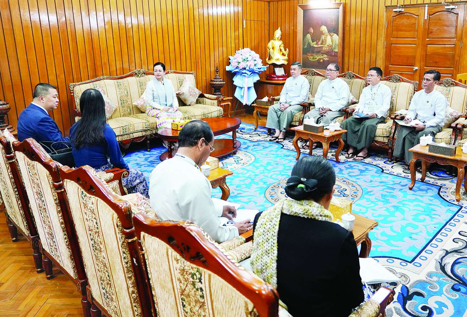 ဟိုတယ်နှင့်ခရီးသွားလာရေးဝန်ကြီးဌာန ပြည်ထောင်စုဝန်ကြီး ဒေါက်တာသက်သက်ခိုင်သည် ယနေ့နံနက်ပိုင်းတွင် မြန်မာ-တရုတ် နှစ်နိုင်ငံခရီးသွားမြှင့်တင်ရေးဆိုင်ရာကိစ္စရပ်များကို စဉ်ဆက်မပြတ် အကောင်အထည်ဖော်ဆောင်ရွက်နိုင်ရန် မြန်မာနိုင်ငံရန်ကုန်မြို့အခြေစိုက် Exp-loring Myanmar Culture and Tourism Organization ၏ ဥက္ကဋ္ဌ Mr. David Liu အား ဝန်ကြီးဌာနရှိ ပြည်ထောင်စုဝန်ကြီး၏ ဧည့်ခန်းမ၌ လက်ခံတွေ့ဆုံသည်။