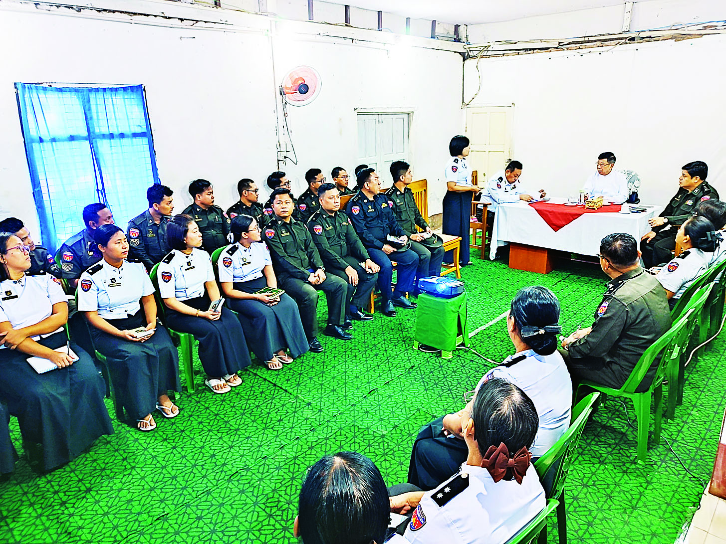 ယင်းနောက် မှော်ဘီခရိုင်နှင့် မြို့နယ်ဦးစီးမှူးရုံး ဝန်ထမ်းများနှင့်တွေ့ဆုံ၍ နိုင်ငံတော်အတွက် လက်ရှိဦးစားပေးလုပ်ငန်းများဖြစ်သည့် နောင်ကျင်းပမည့် ရွေးကောက်ပွဲများတွင် မဲပေးပိုင်ခွင့်ရှိသူ နိုင်ငံသားတိုင်းကိုင်ဆောင် ကတ်ပြားတစ်မျိုးမျိုး ကိုင်ဆောင်မဲပေးနိုင်ရေးအတွက် ပန်းခင်းစီမံချက်များဖြင့် အိမ်ထောင်စုလူဦးရေစာရင်းနှင့် နိုင်ငံသားစိစစ်ရေး ကတ်ပြားများကို ဥပဒေနှင့်အညီထုတ်ပေးခြင်း၊ e-ID စနစ်အတွက် လူတစ်ဦးချင်း၏ ကိုယ်ရေးအချက်အလက်နှင့် ဇီဝဆိုင်ရာအချက် အလက်ကောက်ယူကာ Unique ID နံပါတ်ထုတ်ပေးခြင်း၊ မဲစာရင်းတိကျမှန်ကန်စွာ ပြုစုနိုင်ရေးအတွက် မြေပြင်ကွင်းဆင်းစာရင်း ကောက်ယူခြင်း၊ ပြည်လုံးကျွတ် လူဦးရေနှင့်အိမ်အကြောင်းအရာ သန်းခေါင်စာရင်းကောက်ယူခြင်း စသည့်လုပ်ငန်းများကို ဒေသအာဏာပိုင်များ၊ ဆက်စပ်အဖွဲ့အစည်းများနှင့် ပူးပေါင်းဆောင်ရွက်ပြီး ကောက်ယူရရှိသည့် ကိန်းဂဏန်းအချက်အလက်များကို နှိုင်းယှဉ်သုံးသပ်အတည်ပြုကာ တိကျမှန်ကန်သည့် မဲစာရင်းပြုစုဆောင်ရွက်သွားမည့်အခြေအနေ၊ ဌာန၏လုပ်ငန်းဆောင်ရွက်မှုအားလုံးကို တည်ဆဲဥပဒေ၊ နည်းဥပဒေ လုပ်ထုံးလုပ်နည်းများနှင့်အညီ ဆောင်ရွက်ကြရမည့်အခြေအနေများနှင့် စပ်လျဉ်း၍ ဆွေးနွေးမှာကြားခဲ့ကြောင်း သိရသည်။