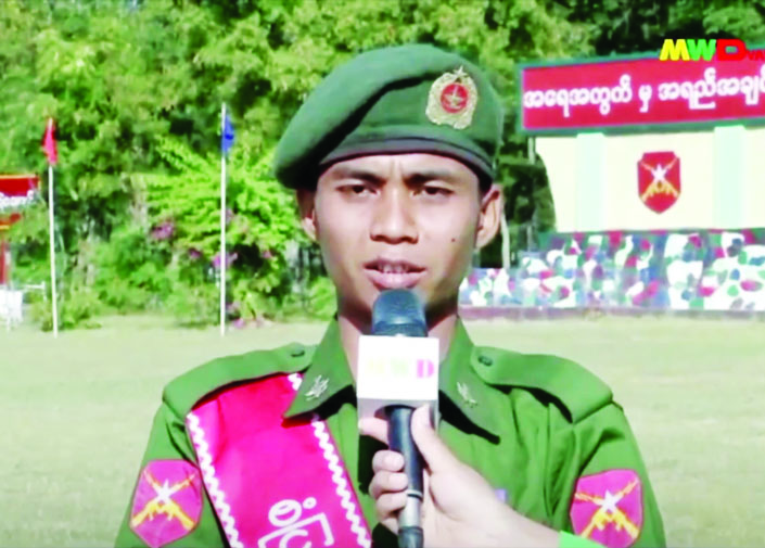 ၂။ ပြည်သူ့စစ်မှုထမ်းသင်တန်း အမှတ်စဉ် ၆/၂၀၂၄ မှာ ကျွန်တော်ရရှိခဲ့တဲ့ ဆုအမျိုးအစားကတော့ စံပြတပ်သားဆုဖြစ်ပါတယ်။ အခုလိုဆုရရှိခဲ့အောင်လို့ ကျွန်တော်ကြိုးစားခဲ့ရတာတွေကတော့ အများကြီးပါ။ ဆရာသမားတွေရဲ့ သင်ကြားပေးတဲ့ အတတ်ပညာတွေအကုန်လုံးကို ကျွန်တော် ဆည်းပူးသင်ယူတယ်။ ကျွန်တော် အားနေတဲ့အချိန်မှာလည်း လေ့လာပါတယ်။ မှတ်သားပါတယ်။ ဆရာတွေရဲ့စကားကိုလည်း ကျွန်တော် တစ်သဝေမတိမ်း နားထောင်ပါတယ်။ ကျွန်တော်မနက်ဆိုလည်း အစောဆုံးထပြီးတော့ ကစ်တွေဘာတွေလည်း အကောင်းဆုံးခေါက်တယ်။ အဲဒီ အတွက်လည်း ကျွန်တော် စံပြတပ်သားဆုကို ရခဲ့တယ်လို့ထင်ပါတယ်။ အရပ်သားဘဝနဲ့ စစ်မှုထမ်းဘဝရဲ့ ကွာခြားချက်ကတော့ အများကြီးပါပဲ။ အရင်ကဆို ကျွန်တော် အချိန်လည်း မလေးစားတတ်ပါဘူး။ စည်းကမ်းလည်း မကောင်းခဲ့ပါဘူး။ အခု ဒီရောက်လာတဲ့အချိန်မှာ ဆရာတွေရဲ့ သွန်သင်ဆုံးမမှုနဲ့ ဗိုလ်ကြီးများရဲ့ သွန်သင်ဆုံးမှုအောက်မှာ ကျွန်တော်အချိန်ကိုလည်း လေးစားတတ်လာသလို စည်းကမ်းလည်း အရမ်းကောင်းမွန်လာတယ်လို့ ကျွန်တော့်ကိုယ်ကျွန်တော် ထင်မြင်မိပါတယ်။ ပြည်သူ့စစ်မှုထမ်းသင်တန်းကို တက်ရောက်ခဲ့ရတဲ့ ရည်ရွယ်ချက်ကတော့ ကျွန်တော်တို့နိုင်ငံအပေါ် ကျရောက်လာမည့် ဘေးအန္တရာယ်တွေကို ကာကွယ်ချင်တဲ့စိတ်ရှိလို့ပါ။ နိုင်ငံတော်တာဝန်တွေကို ပြည်သူတစ်ယောက်အနေနဲ့ ထမ်းဆောင်ရတဲ့အတွက် အရမ်းဝမ်းသာမိပါတယ်။ ကျွန်တော့်နိုင်ငံအပေါ်ကို ကျွန်တော့်အသက်နဲ့ရင်းပြီး ကာကွယ်ပါ့မယ်လို့ ကျွန်တော် ခံယူချက်ထားပါတယ်။
