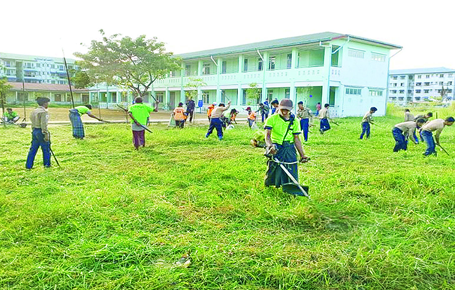 ၂၀၂၄ - ၂၀၂၅ ပညာသင်နှစ် တွင် တက်ရောက်ပညာသင်ကြားလျက်ရှိသည့် ကျောင်းသားကျောင်းသူများ အဆင်ပြေချောမွေ့စွာ ပညာသင်ကြားနိုင်ရေးနှင့် စာသင်ကျောင်းများ ဥပဓိရုပ် ကောင်းမွန်စေရေးအတွက် တိုင်းဒေသကြီးနှင့်ပြည်နယ်အသီးသီးရှိ အခြေခံပညာကျောင်းများနှင့် တက္ကသိုလ်များတွင် ကျောင်းပတ်ဝန်းကျင်သန့်ရှင်းသာယာလှပရေးလုပ်ငန်းများကို စုပေါင်းဆောင်ရွက်ပေးလျက်ရှိသည်။