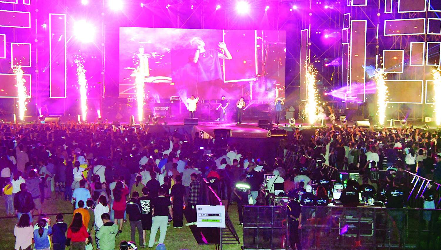 ထိုသို့ တေးဂီတဖျော်ဖြေပွဲသို့ လာရောက်ပါဝင်ဆင်နွှဲကြသူများကိုလုံခြုံစိတ်ချစွာ ပျော်ပျော်ရွှင်ရွှင် ပါဝင်ဆင်နွှဲနိုင်စေရန်အတွက် ကွင်းအတွင်းသို့ဝင်ရောက်စဉ် တာဝန်ရှိသူများက ဝင်ပေါက်ဂိတ်များတွင် လုံခြုံရေးအရ လိုအပ်သည့်စစ်ဆေးမှုများပြုလုပ်ပြီး ဖျော်ဖြေပွဲဝန်းကျင်နေရာများ၌လည်း လုံခြုံရေးတပ်ဖွဲ့ဝင်များ သေချာကြည့်ရှု စောင့်ကြပ်လျက်ရှိသည်ကိုလည်း တွေ့ရသည်။