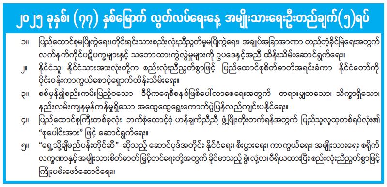 ၂၀၂၅ ခုနှစ်၊ (၇၇) နှစ်မြောက် လွတ်လပ်ရေးနေ့ အမျိုးသားရေးဦးတည်ချက် (၅) ရပ်